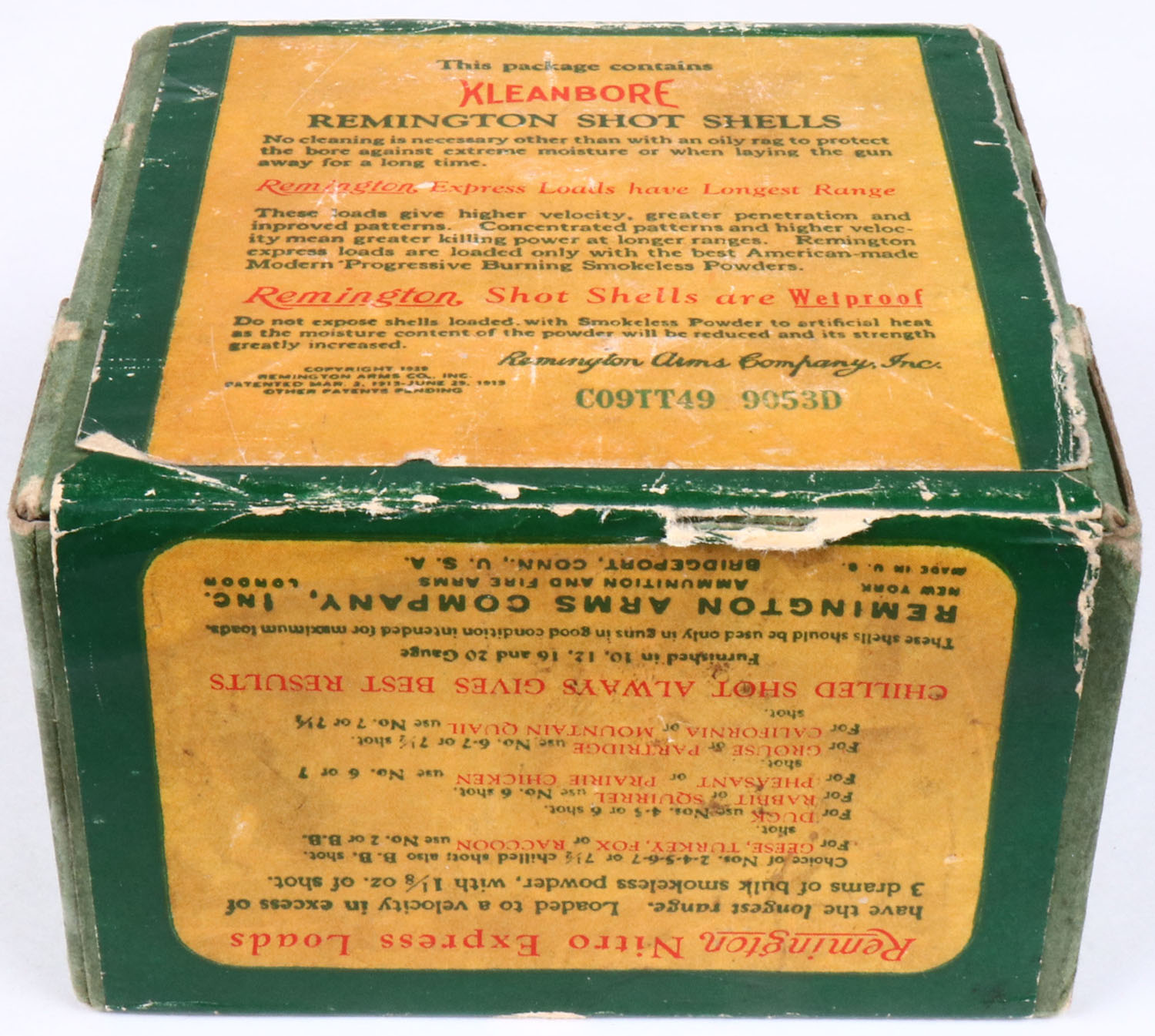 Remington Nitro Express, Long Range Game Loads with Acrylic box, pictures Mallard in flight, 16ga., 2pc., FULL and SEALED, shot size 4 CH, green box with sunburst logo & MALLARD on side, box is very solid with great colors to label. Grade: Excellent + - Value: 80 to 200