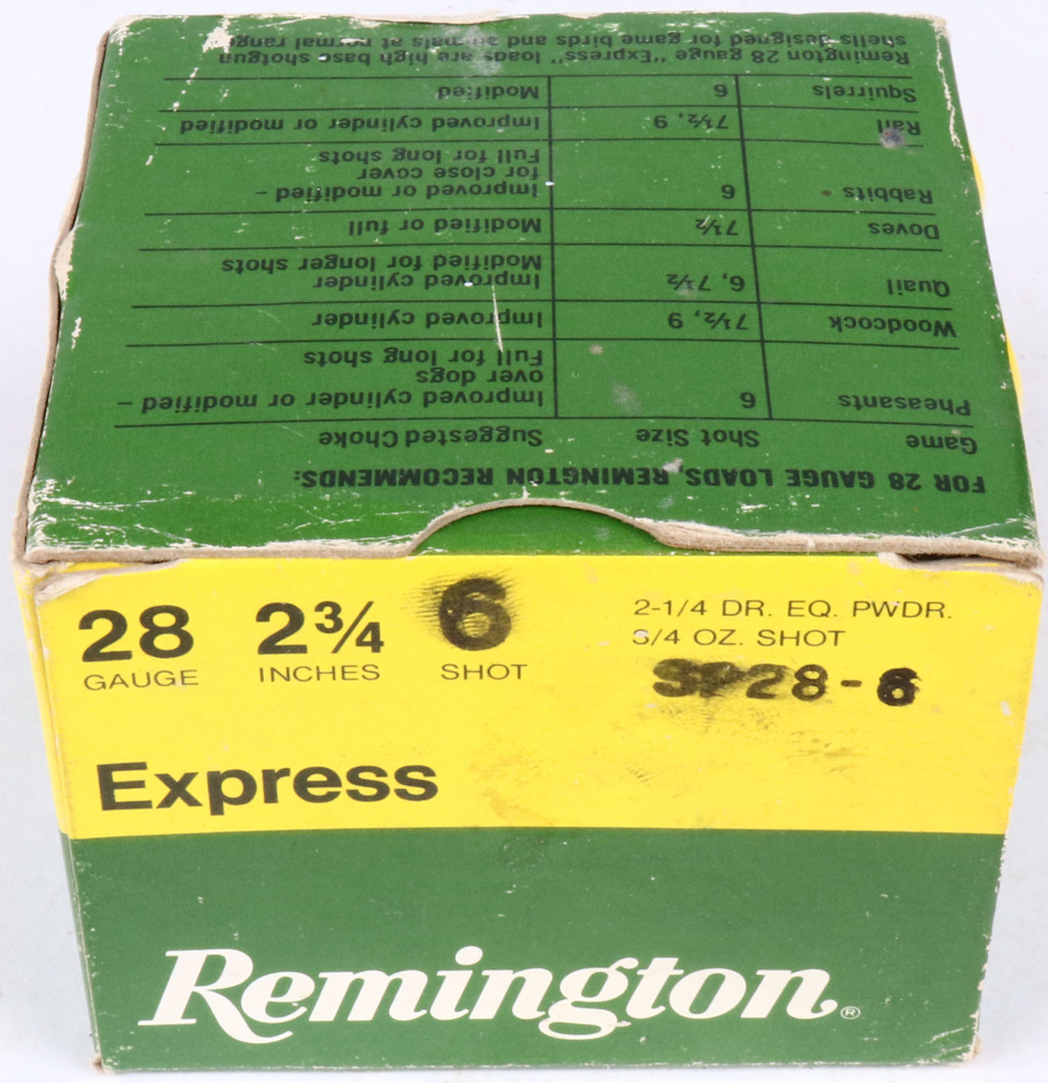 Remington, Express, 28ga., 1pc., Full, shot size 6, multi-colored box, shells are excellent. Grade: Excellent - Value: 8 to 20