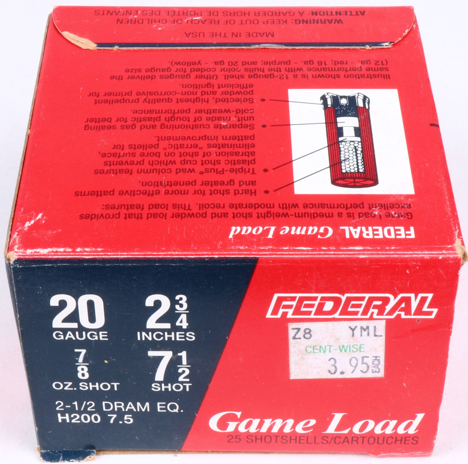 Federal, Game Load, 20ga., 1pc., Full, shot size 7 1/2, multi-colored box, shells are excellent. Grade: Excellent - Value: 8 to 20