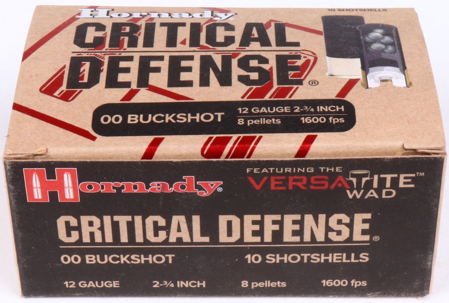 Hornady, Critical Defense, 12ga., 1pc., Full, shot size 00 Buck, box is solid, Shells are excellent. Grade: Excellent + - Value: 8 to 20