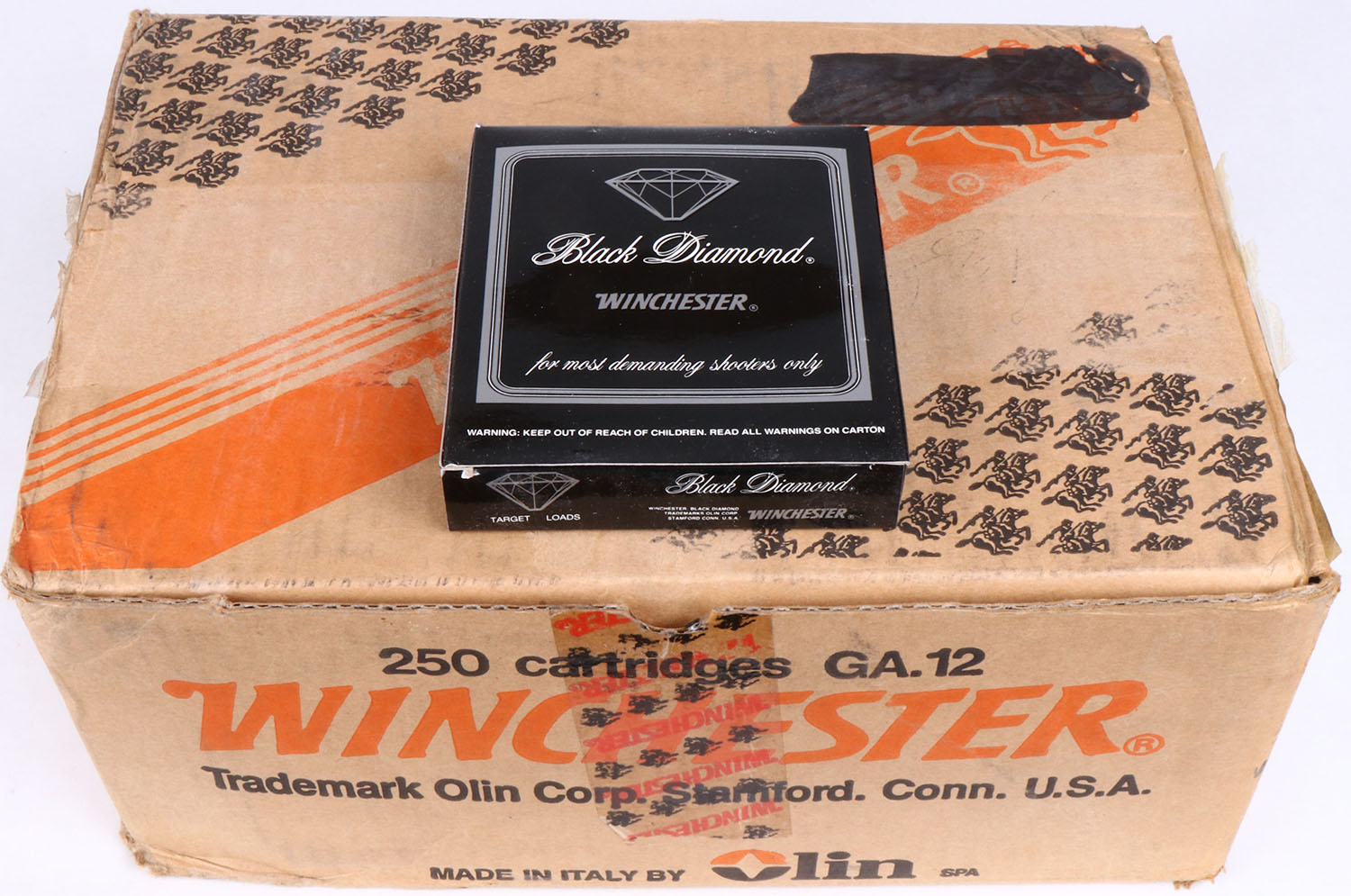 Winchester, Black Diamond, 12ga., 1pc., FULL case of 26 boxes, 260rds, shot size 7 1/2, box is solid with scuffing, inside boxes are great, Shells are excellent. Grade: Excellent + - Value: 50 to 300