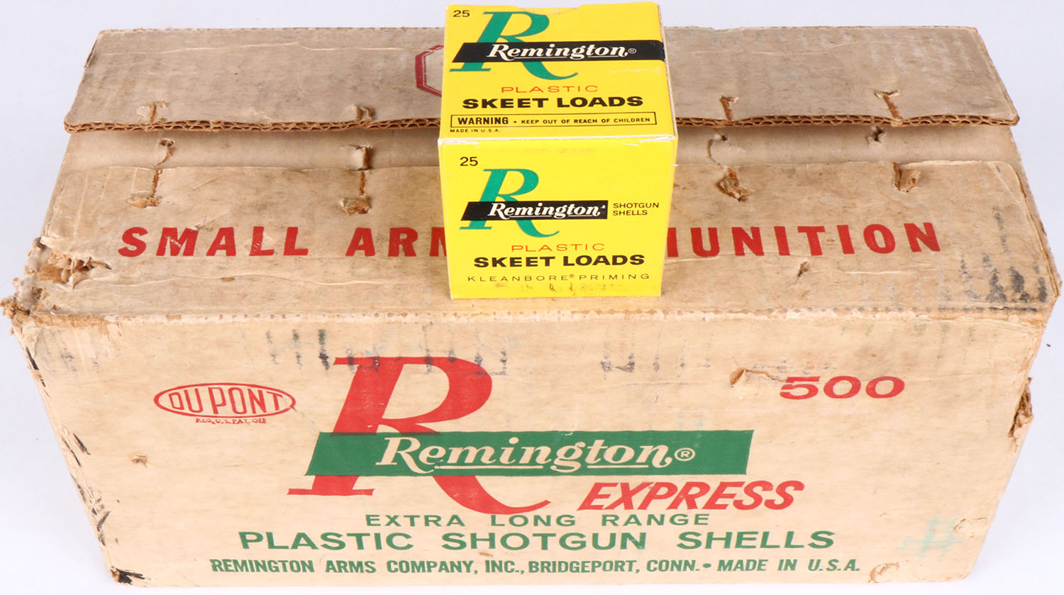 Remington, Express, 410ga., 1pc., Full case of 20 boxes, 500rds, shot size 9, case is very solid with soiling & scuffing, boxes are excellent, Shells are excellent. Grade: Excellent - Value: 50 to 300