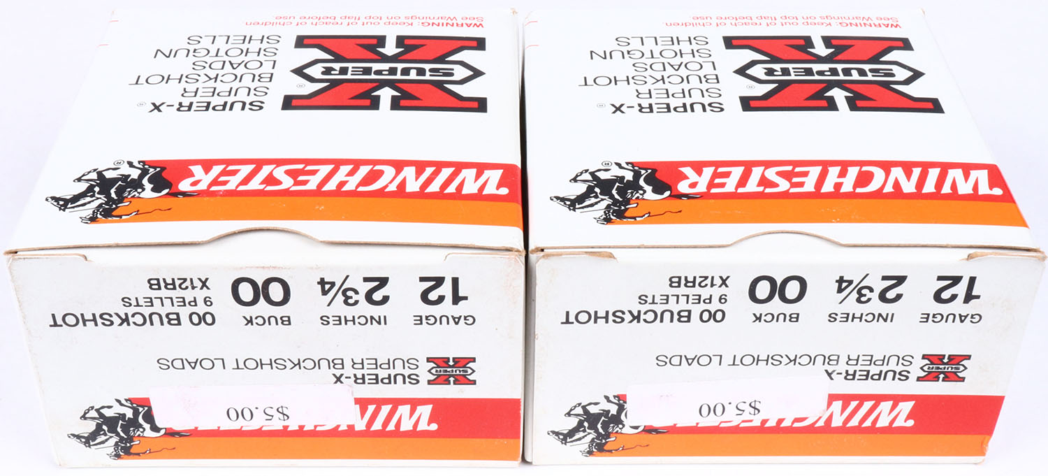 Lot of 2 Winchester, Super X, 12ga., 1pc., Full, 2 3/4'', shot size 00 Buck, multi-colored box, shells are very good. Grade: Excellent - Value: 8 to 20