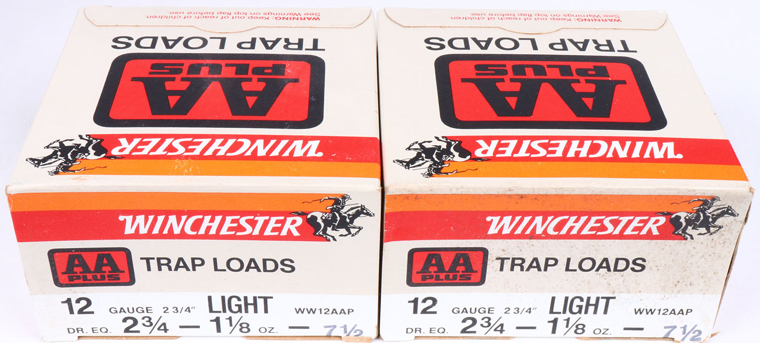 Lot of 2 Winchester, AA Plus, 12ga., 1pc., Full, 2 3/4'', shot size 7 1/2, multi-colored box, shells are very good. Grade: Excellent - Value: 8 to 20