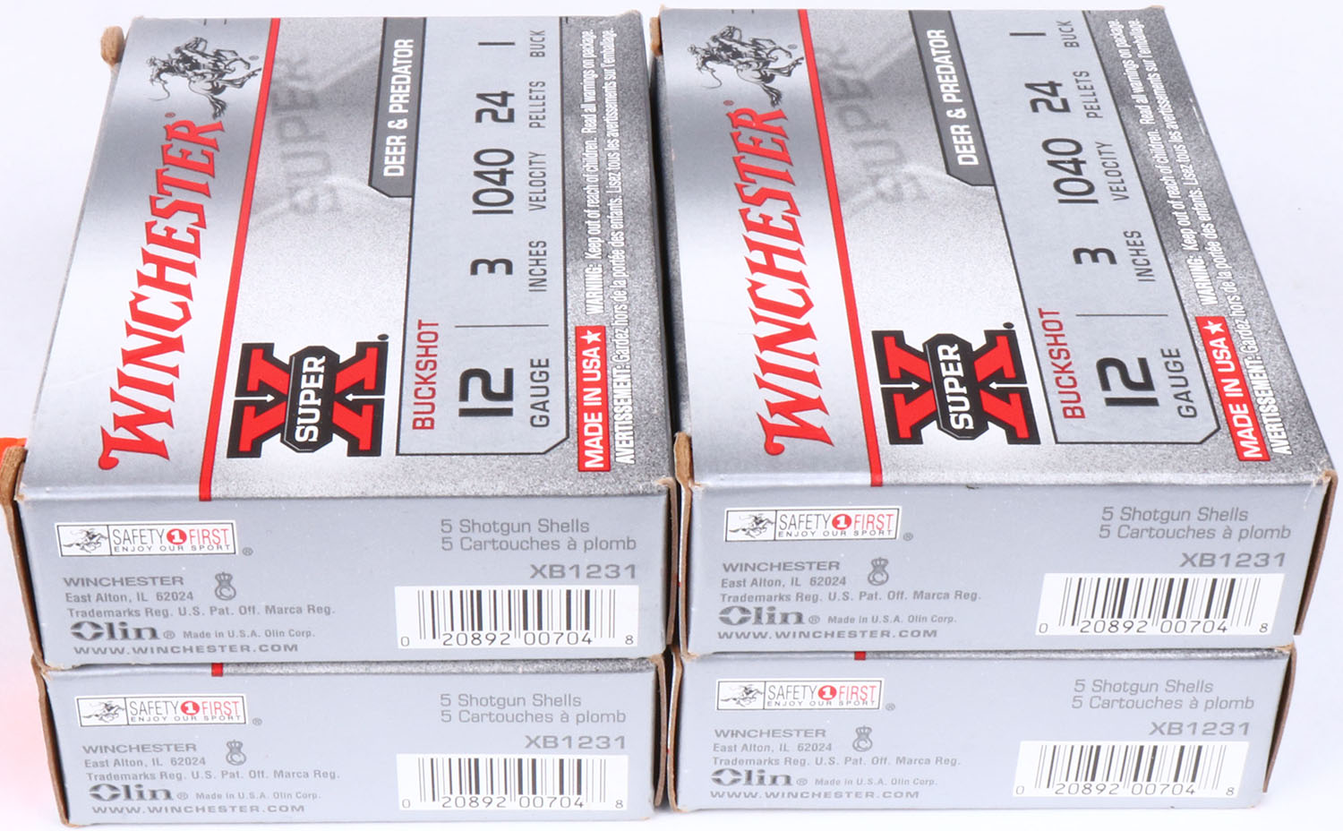 Lot of 4 Winchester, Super X, 12ga., 1pc., Full, 3'', shot size 1 Buck, multi-colored box, shells are very good. Grade: Excellent - Value: 8 to 20