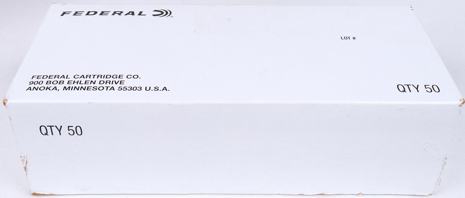 Federal, 12ga., 1pc., Full, 3'', shot size 00 Buck, 50rds., white & black box, Shells are excellent. Grade: Excellent ++ - Value: 8 to 20
