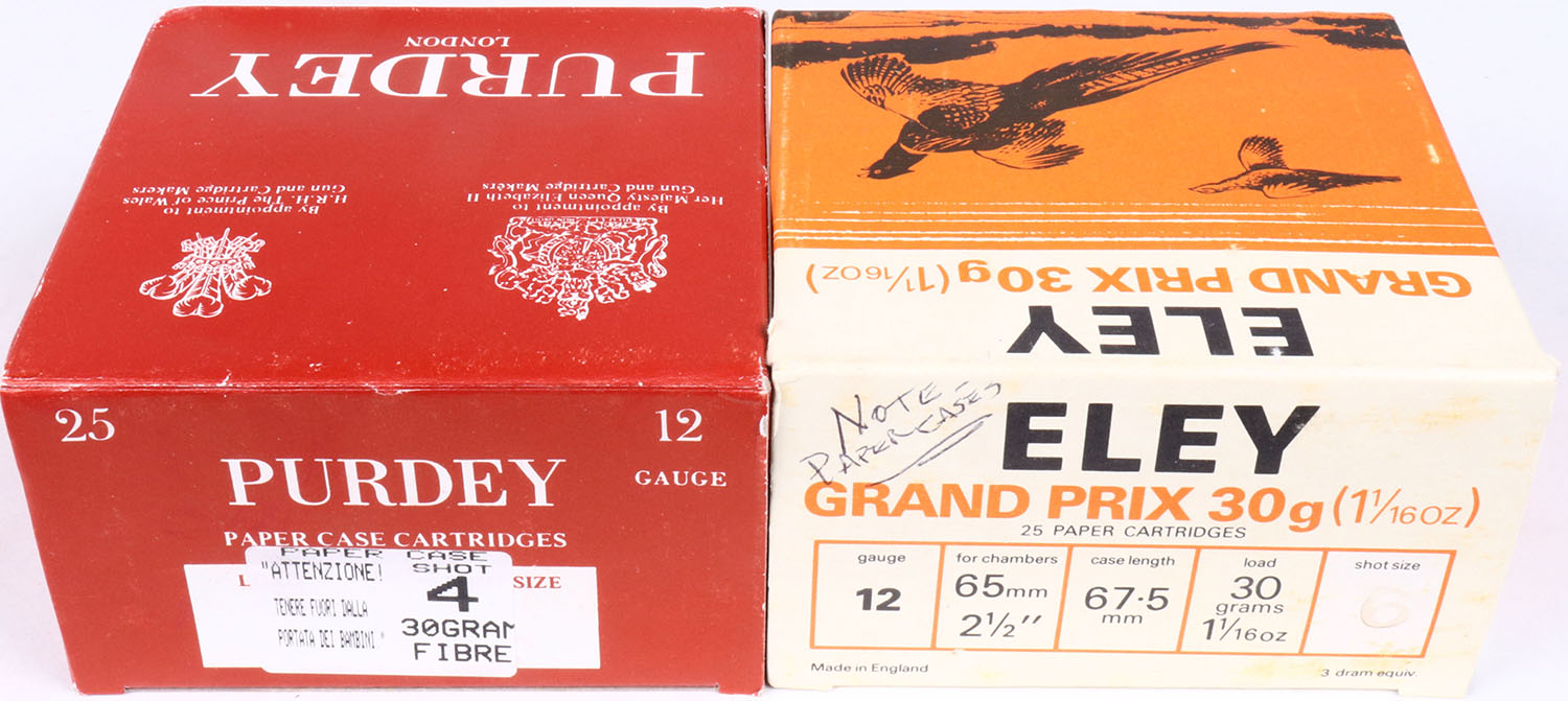 | Lot of 2 Purdey/Eley, 12ga., 1pc., Full, 2 1/2'', shot size 6 ...