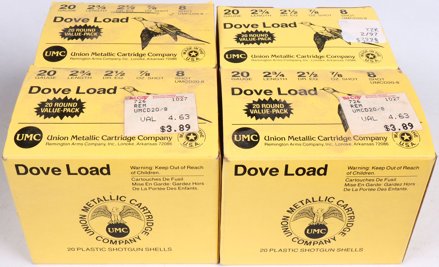 Lot of 4, Appears Full Shotshell Boxes. Grade: Excellent - Value: 2 to 60