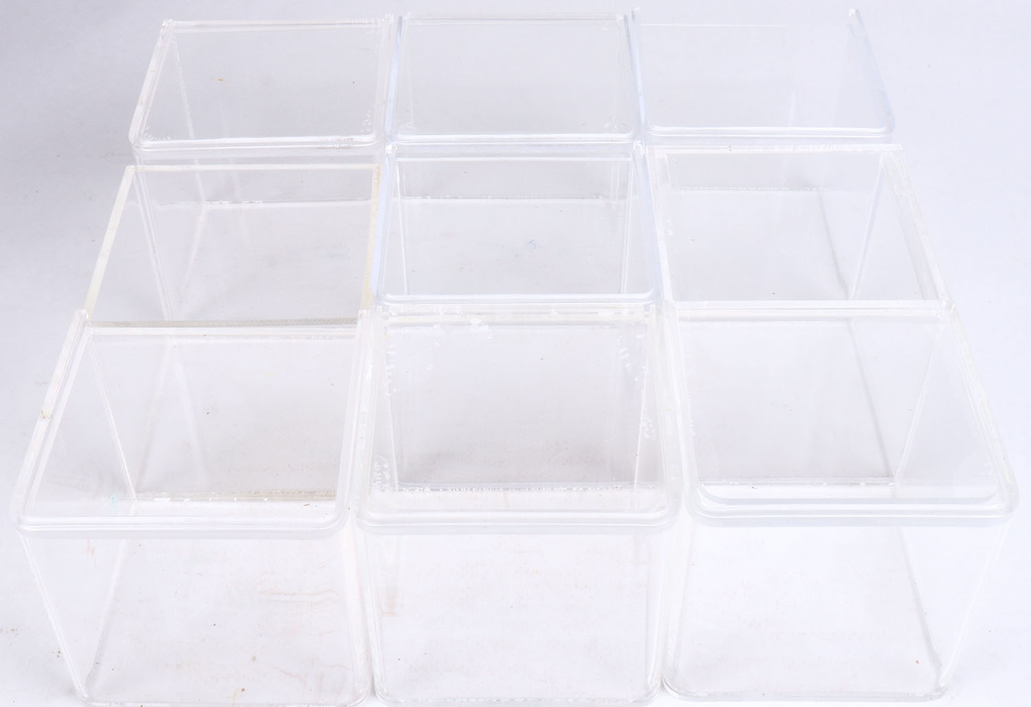 Lot of 9 410ga acrylic Shotshell Boxes. Grade: Excellent - Value: 20 to 150