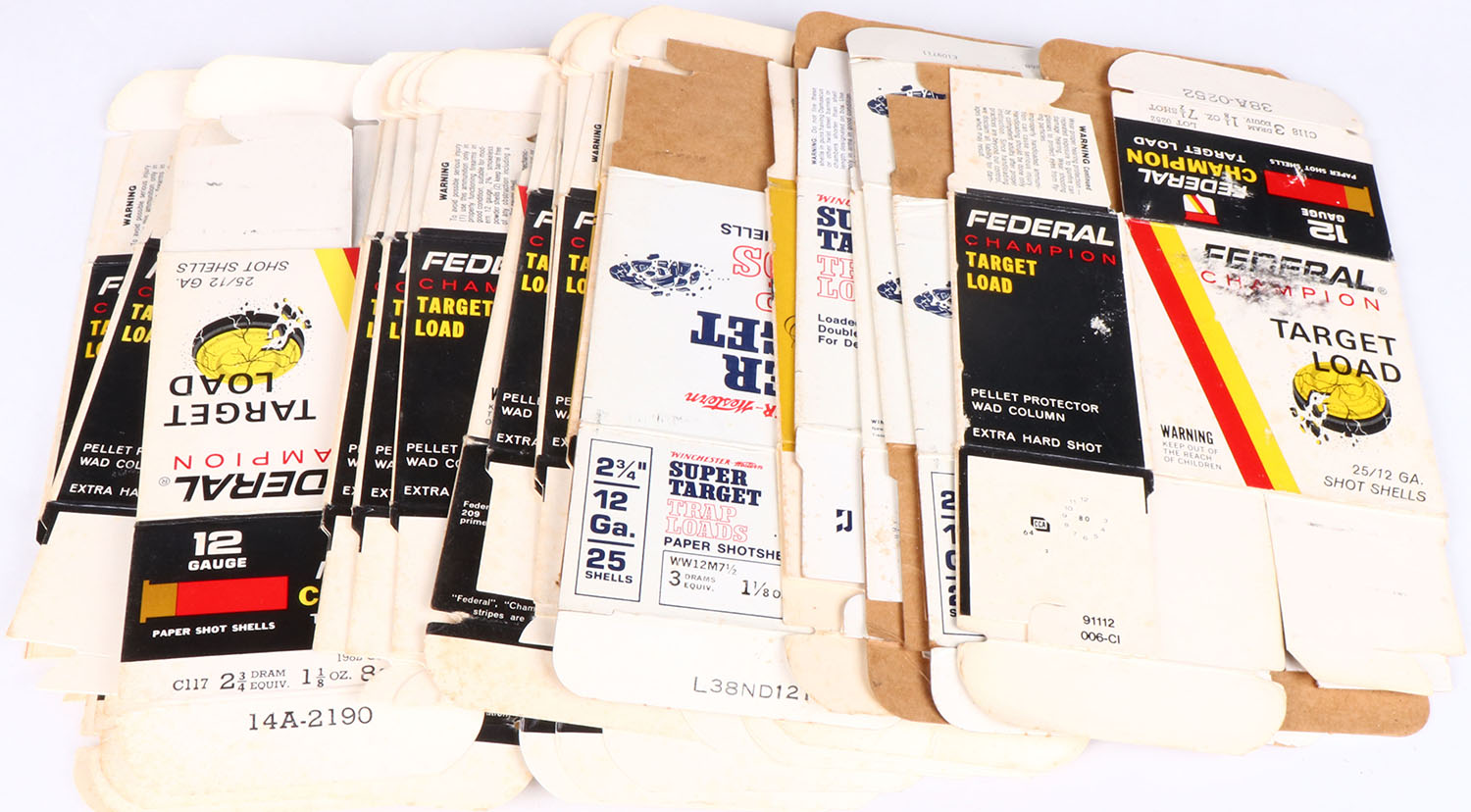 | Large lot of empty Shotshell Boxes. Grade: Excellent - Value:...