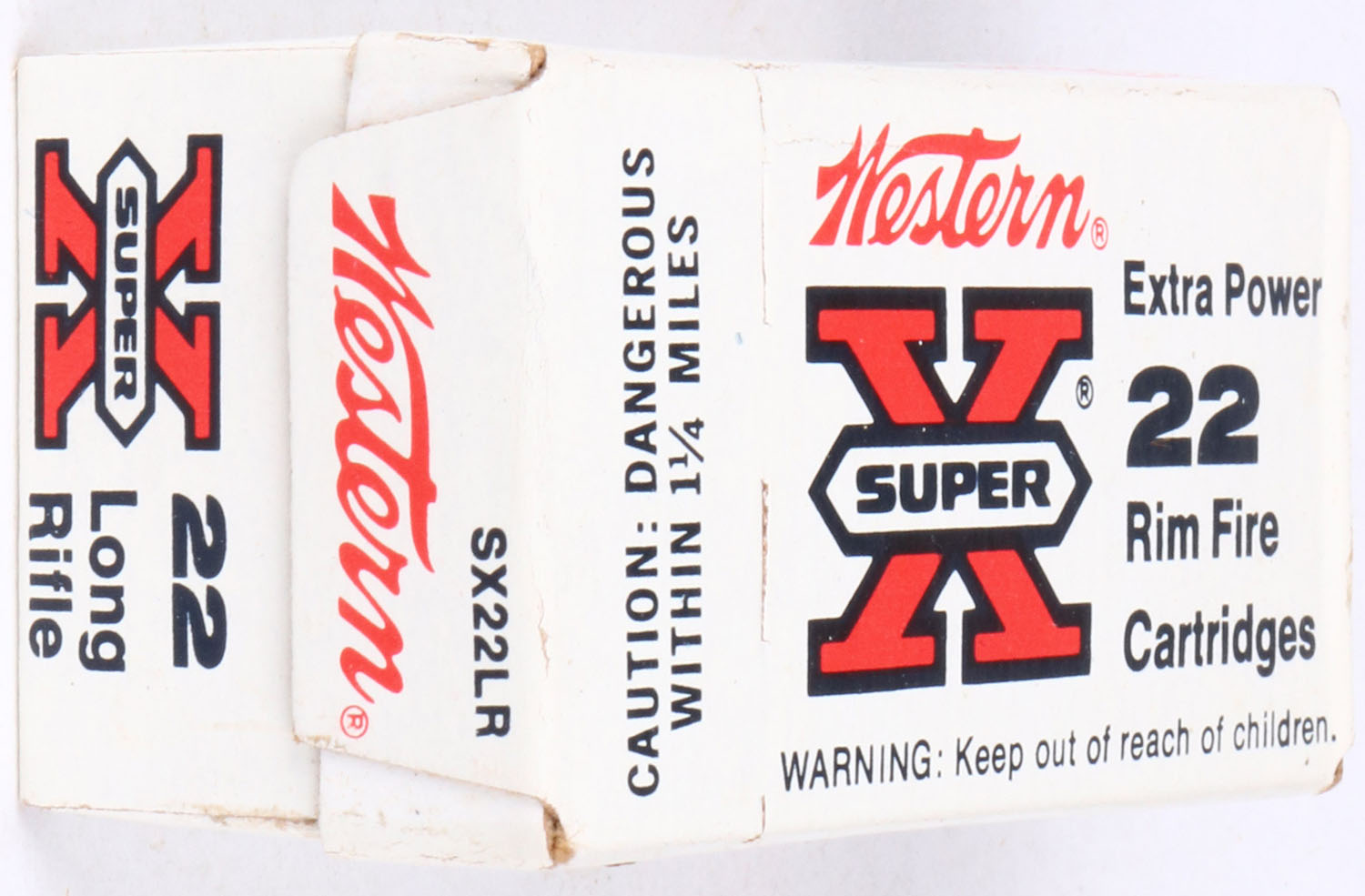 Western, Super X Extra Power, .22 Long Rifle, RHWeb: WCC-13 LR-3, FULL & SEALED, 1pc. White red & blue experimental lift top box, box is near mint with minty color, corners are mostly sharp, edges are crisp. Grade: Excellent ++ - Value: 30 to 90
