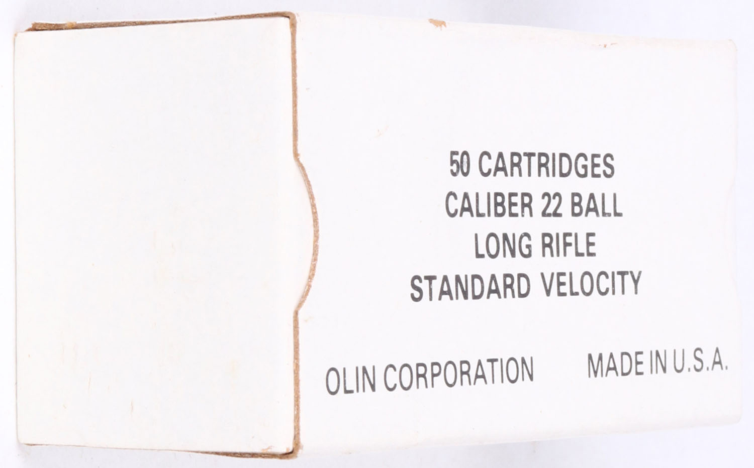 Olin, .22 Long Rifle, Standard Velocity, RHWeb: OLIN-1 LR-1a, Full, 1pc. White box with black print box is MINT with minty color, corners are sharp, edges are crisp, end flaps are solid, ammo is very good to excellent. Grade: Excellent ++ - Value: 4 to 20