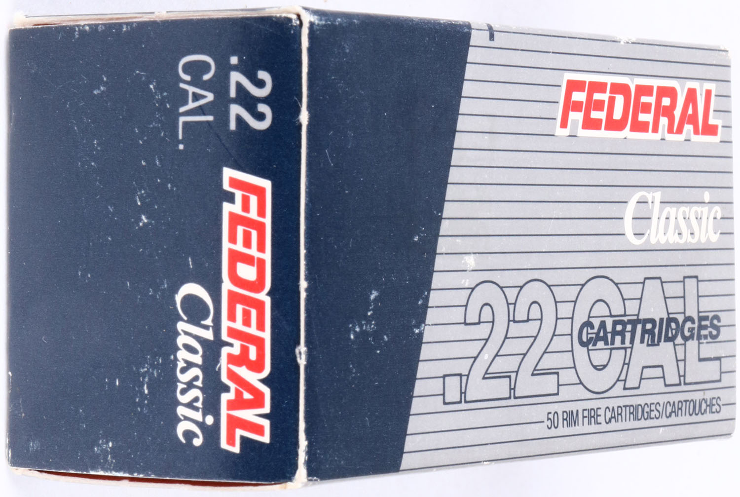 Federal, Classic, .22 Win. Mag, 50 Grain Jacketed Hollow Point, RHWeb: FED-19 WMR-2, Full, 1pc. Silver blue & red box, box is solid with minty color, only very minor shelf & corner wear, edges are crisp, end flaps are solid, ammo is mint. Grade: Excellent ++ - Value: 10 to 50