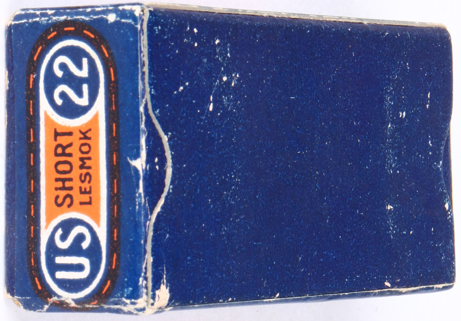 U.S., Rifle Cartridges, .22 Short, Lesmok, RHWeb: US-8 S-2d, FULL & SEALED, 1pc. Blue orange & white box with side sealing label, box is solid with excellent color, some corner wear, minor edge wear, label is intact. Grade: Excellent + - Value: 30 to 90