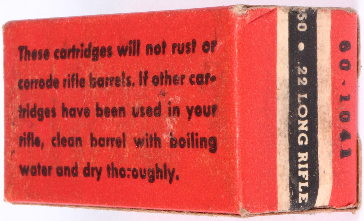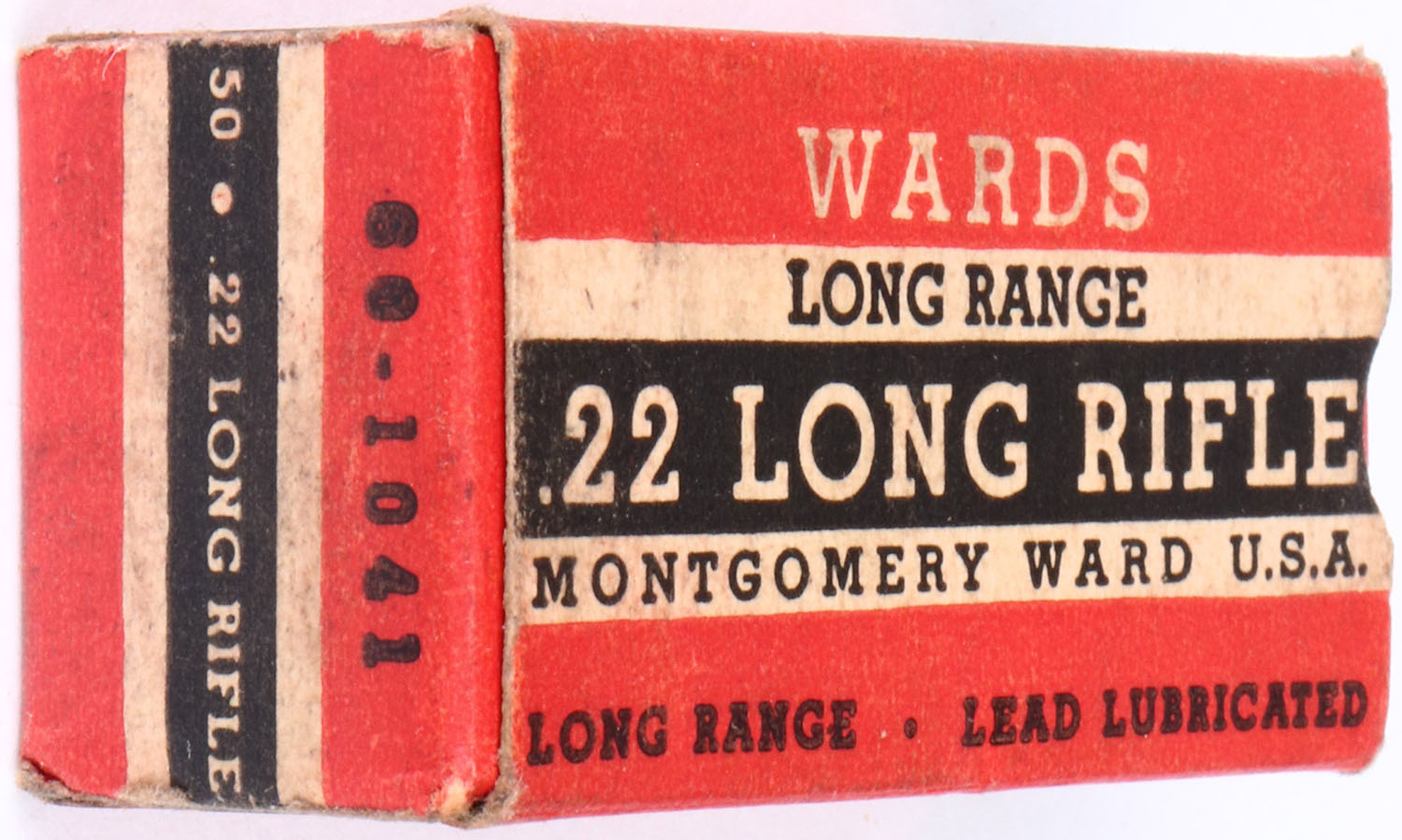 Wards, Long Range, .22 Long Rifle, Lead Lubricated, RHWeb: MW-4A LR-1d, Partial 49rds., 1pc. Red black & white box, box is solid with excellent color, some age soiling, very minor corner wear, edges are crisp, end flaps are solid, ammo is excellent. Grade: Excellent + - Value: 6 to 30