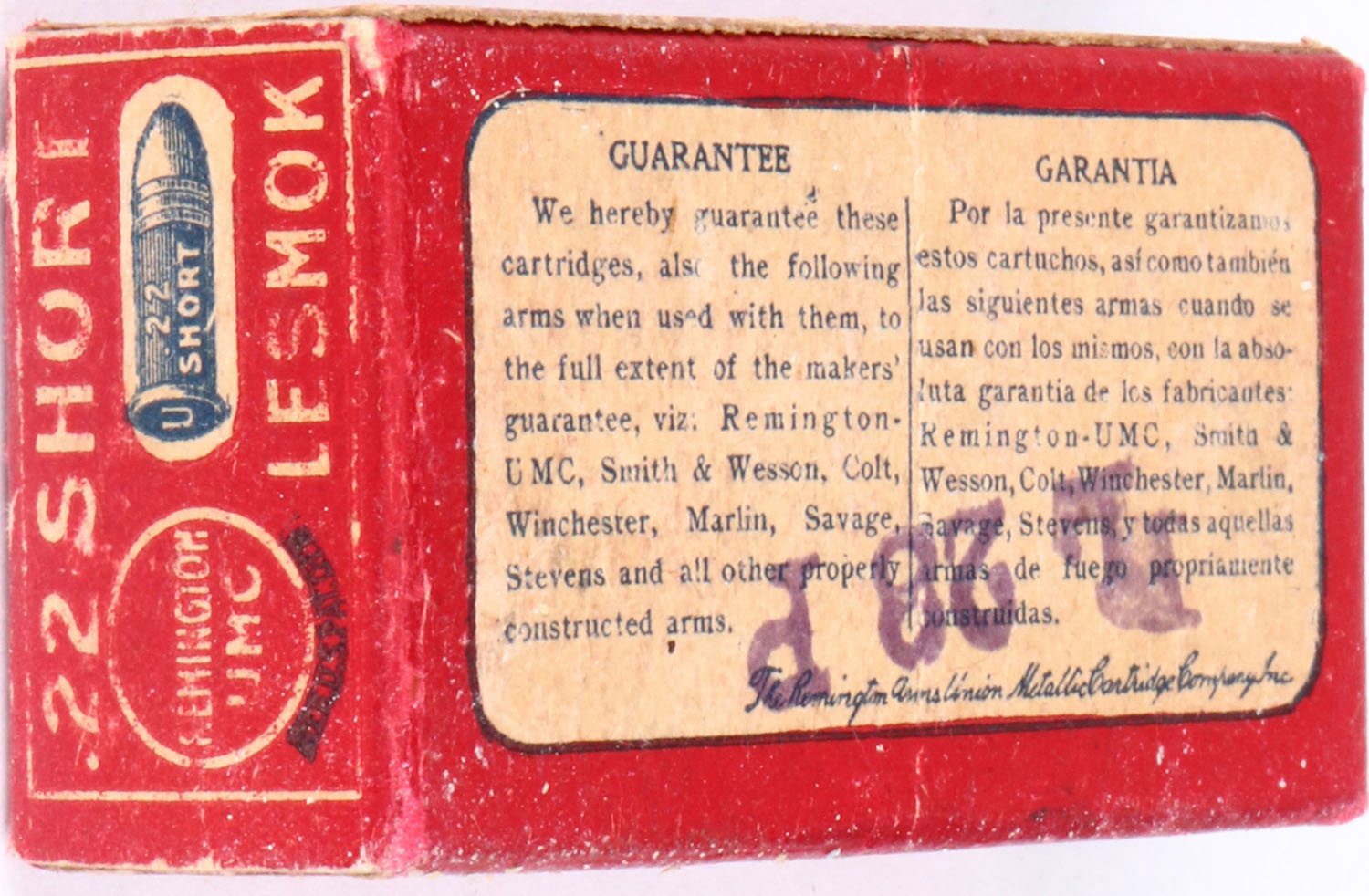 | REM-UMC, .22 Short, Lesmok, RHWeb: REM-4 S-2B, Full, 1pc. Red bo...