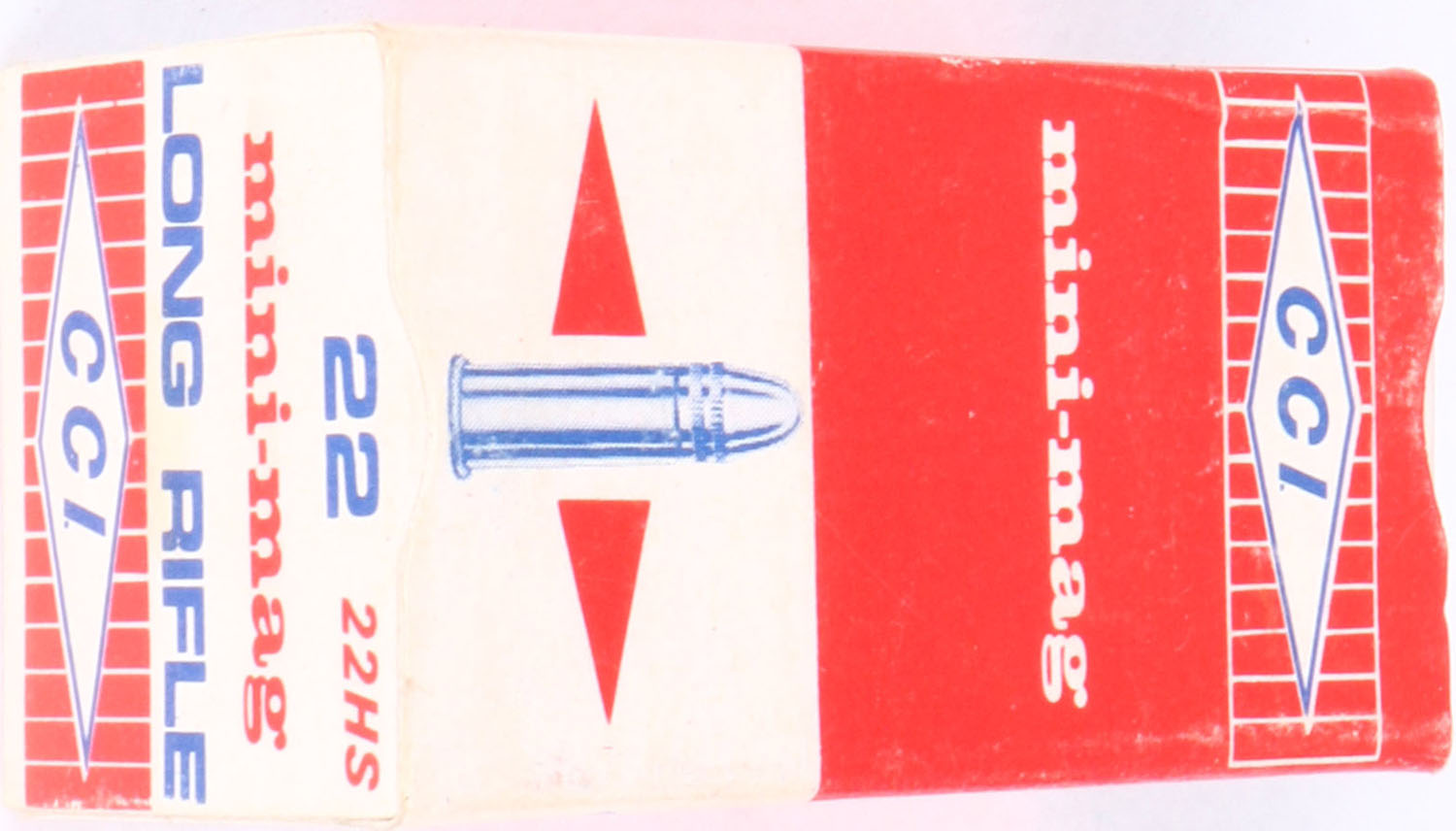 CCi, mini-mag, .22 Long Rifle, RHWeb: CCI-3 LR-1b, Full, 1pc. Red & white box, box is solid with excellent color, very minor shelf wear, corners are mostly sharp, edges are mostly crisp, end flaps are solid, ammo is excellent. Grade: Excellent ++ - Value: 10 to 50