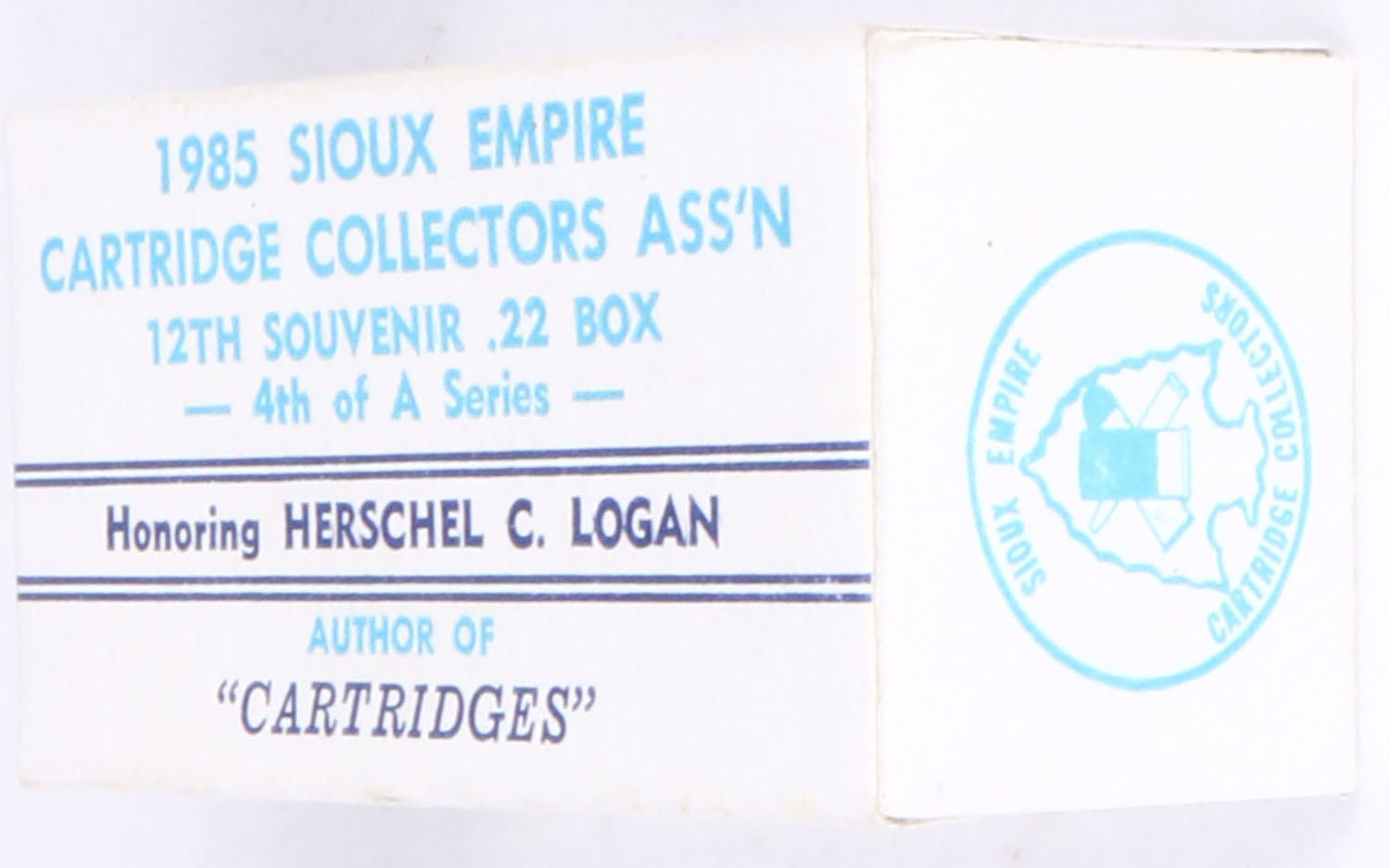 SECCA, 1985 Sioux Empire Cartridge Collectors Association, .22 Long Rifle, RHWeb: SECCA-1 1985B, Full, 1pc. White & blue box, box is MINT with minty color, corners are sharp, edges are crisp, end flaps are solid, ammo is mint. Grade: MINT - Value: 10 to 50