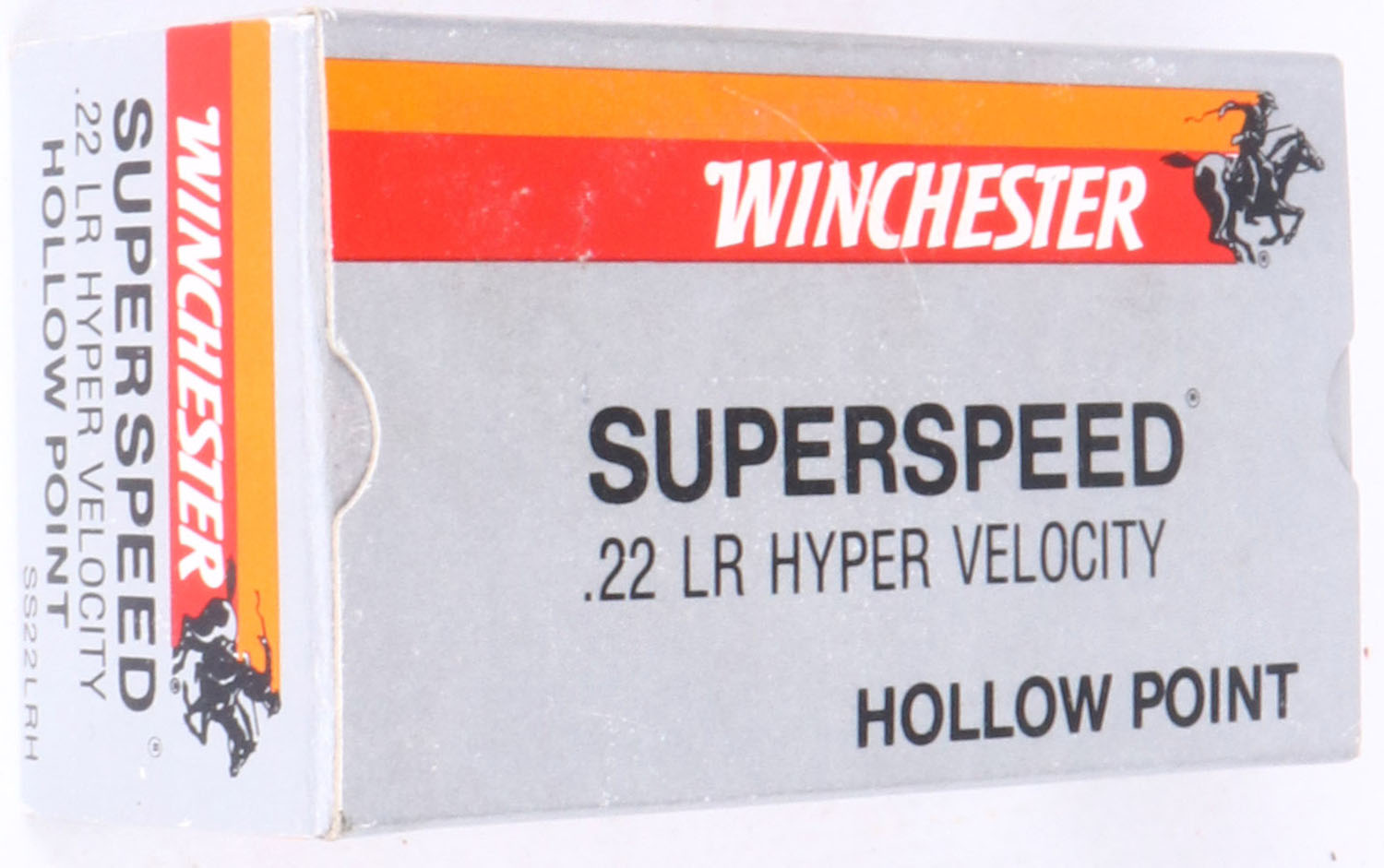 Winchester (Australia), Superspeed, .22 Long Rifle Hollow Point, Hyper Velocity, Full, 1pc. Silver red & orange box, box is MINT with minty color, corners are sharp, edges are crisp, end flaps are solid, ammo is mint. Grade: MINT - Value: 10 to 50