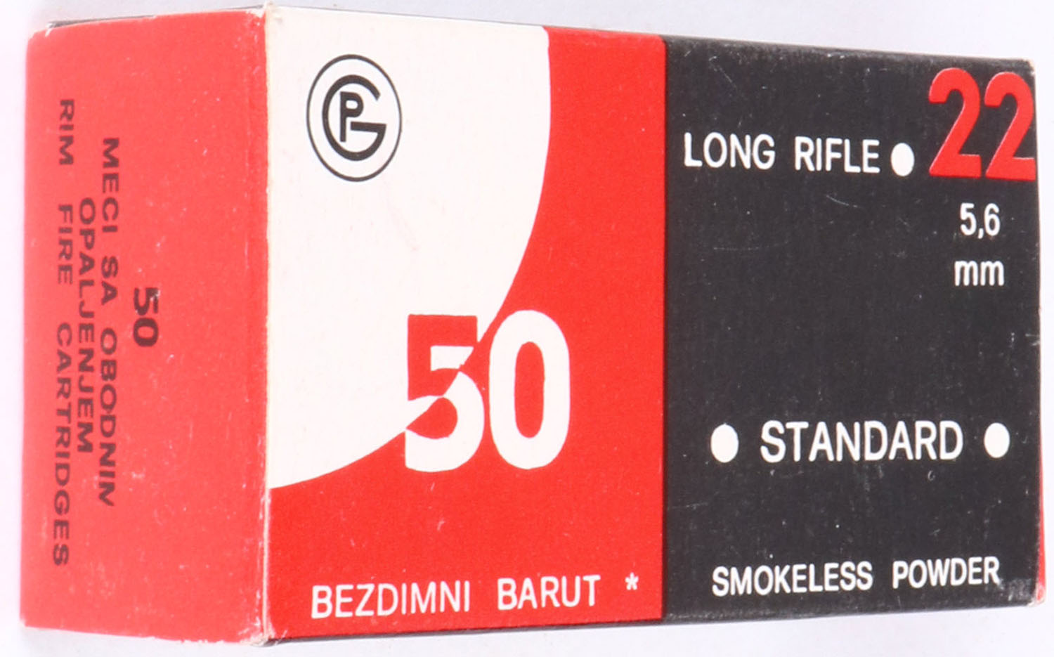 Hansen, Target Grade, .22 Long Rifle, Standard Velocity, Full, 1pc. Black white & red box, box is solid with excellent color, only very minor age soiling & corner wear, edges are crisp, end flaps are solid, ammo is excellent. Grade: Excellent ++ - Value: 4 to 20