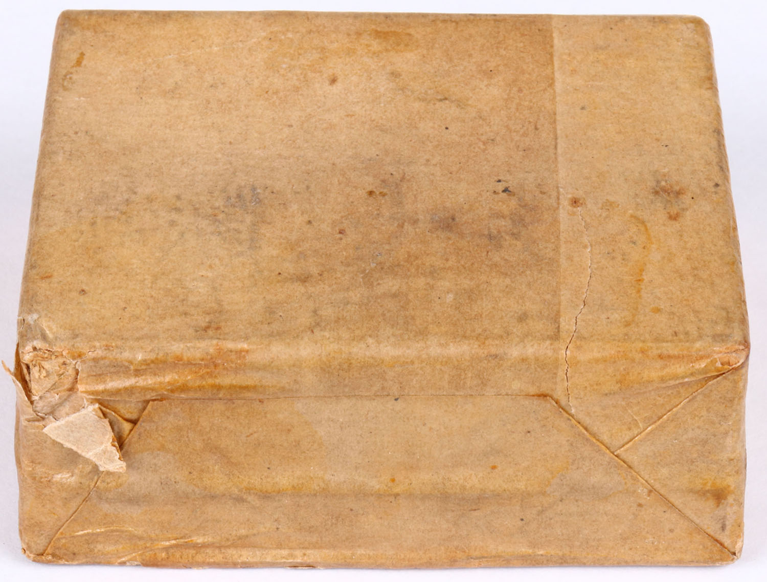Sharps Rifle Manuf'g Co., 52/100 Caliber, For Sharps' Improved Rifle, FULL & SEALED 2pc. Box wrapped in a buff & black paper package, box is solid with very good color, age soiling, minor chipping & tearing to outer packaging, very minor corner wear, edges are mostly crisp, outer packaging is 99% intact. Grade: Excellent + - Value: 400 to 800