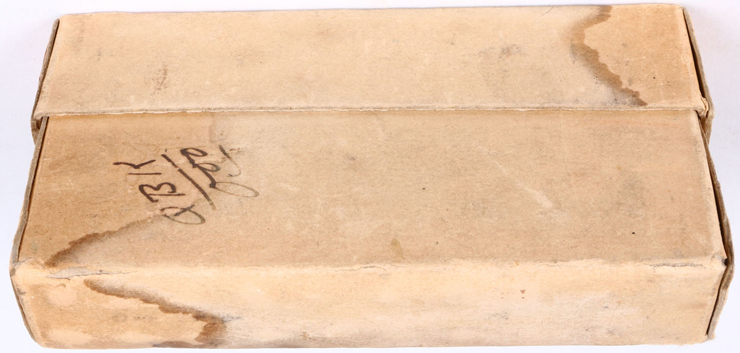 Winchester, .30 Winchester Model 94 (30-30), Smokeless, 170 Gr. Soft point bullet, 2pc, Full, buff box with orange label & black print, box is solid with some color fading, water stains, pen marks on back, light rub marks, & light edge wear, ammo is very good. Grade: Very Good ++ - Value: 40 to 120