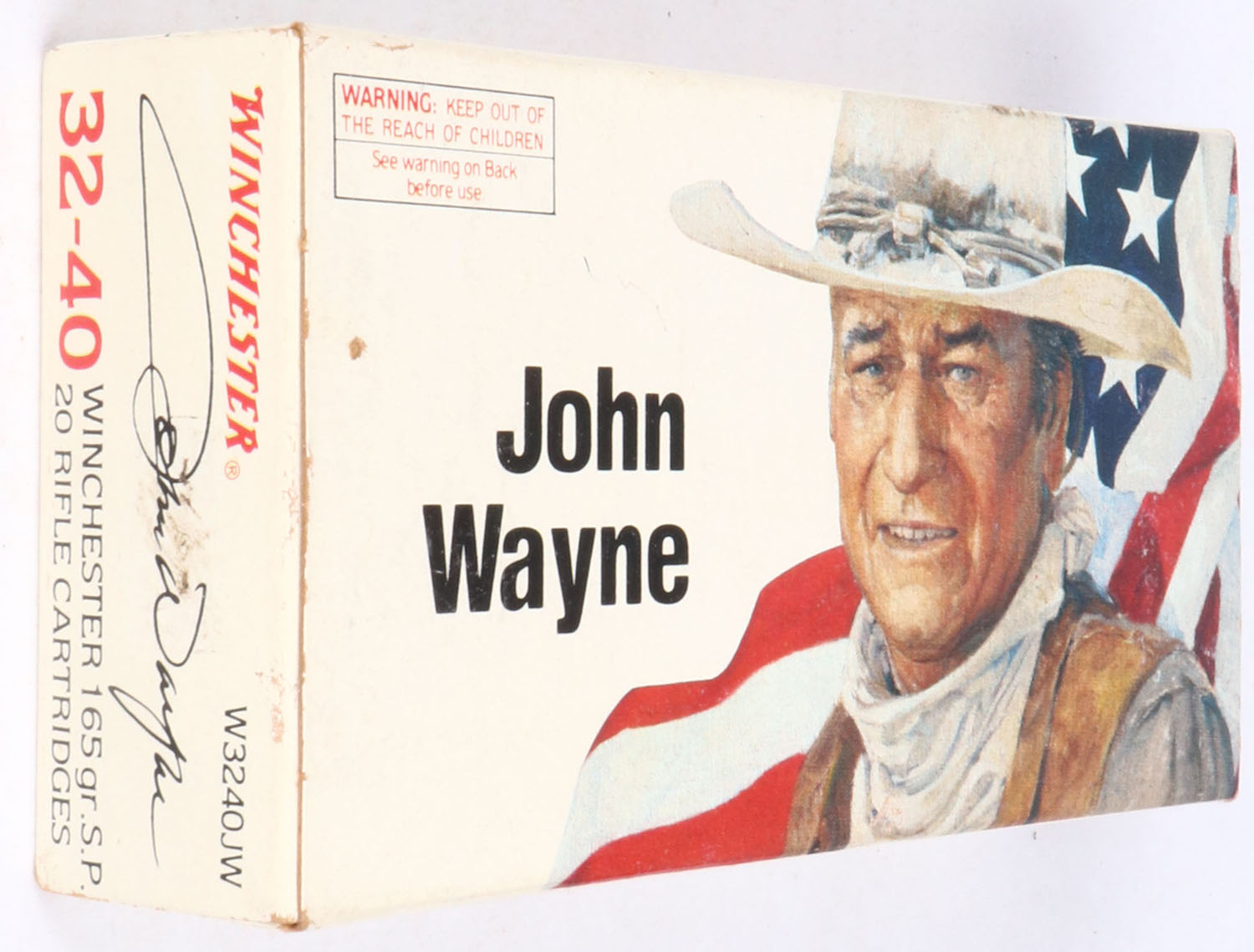 Winchester, John Wayne, 32-40 Win, 165 Grain SP, Full, 1pc., Multi-colored box, box is solid but has shelf wear with great color, Ammo is excellent. Grade: Excellent - Value: 80 to 160