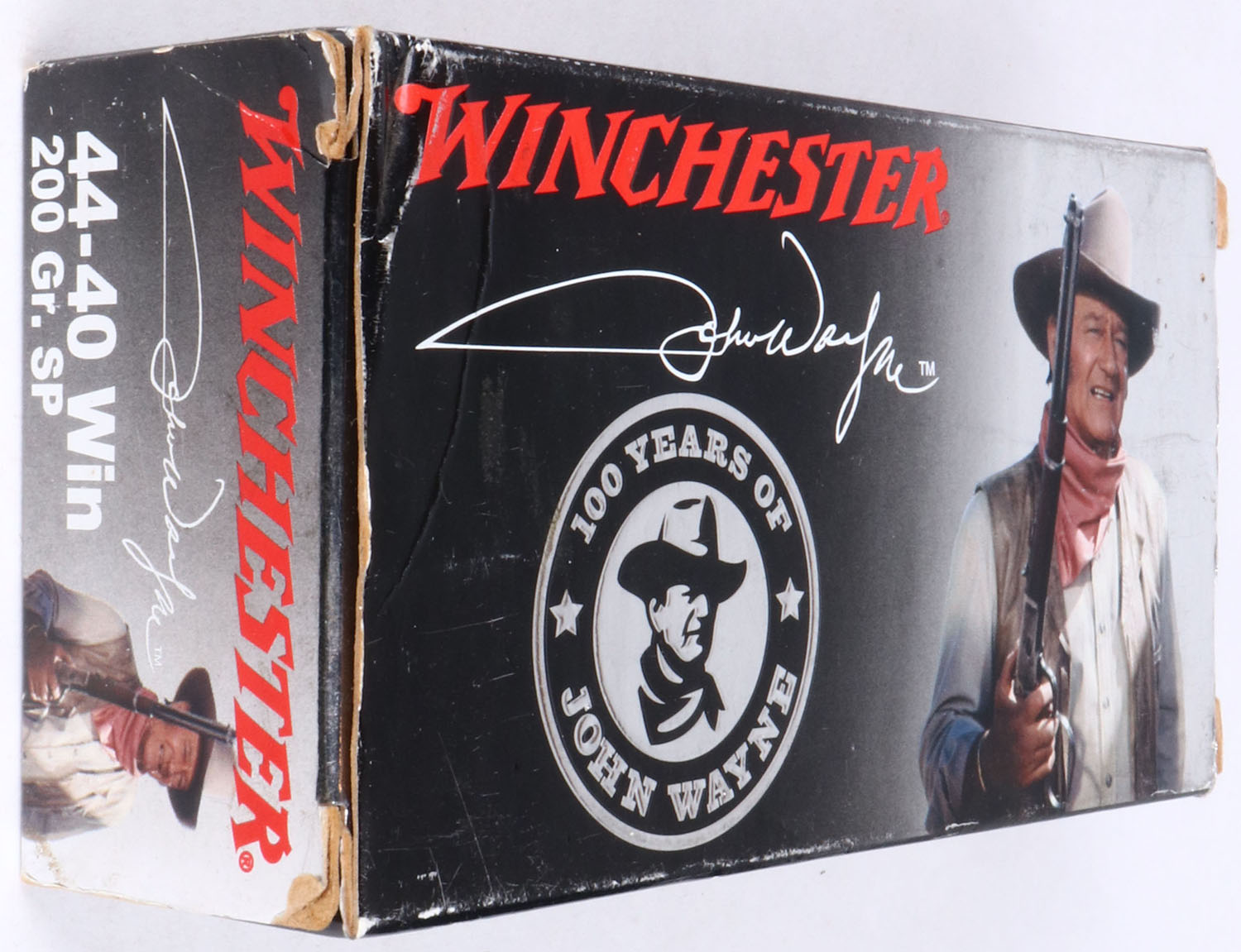 Winchester, John Wayne, 44-40 Win, 200 Grain SP, Full, 1pc., Multi-colored box, box is solid but has light shelf wear with great color, Ammo is excellent. Grade: Excellent - Value: 80 to 160