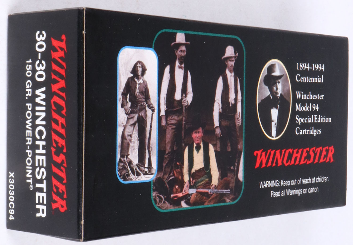 Winchester, Super-X, 1894-1994 Centennial Win Model 94 Special Edition Cartridges, 30-30 Win, 150 Grain Power Point, Full, 1pc., Multi-colored box, box is solid with great color, Ammo is excellent. Grade: Excellent + - Value: 20 to 60
