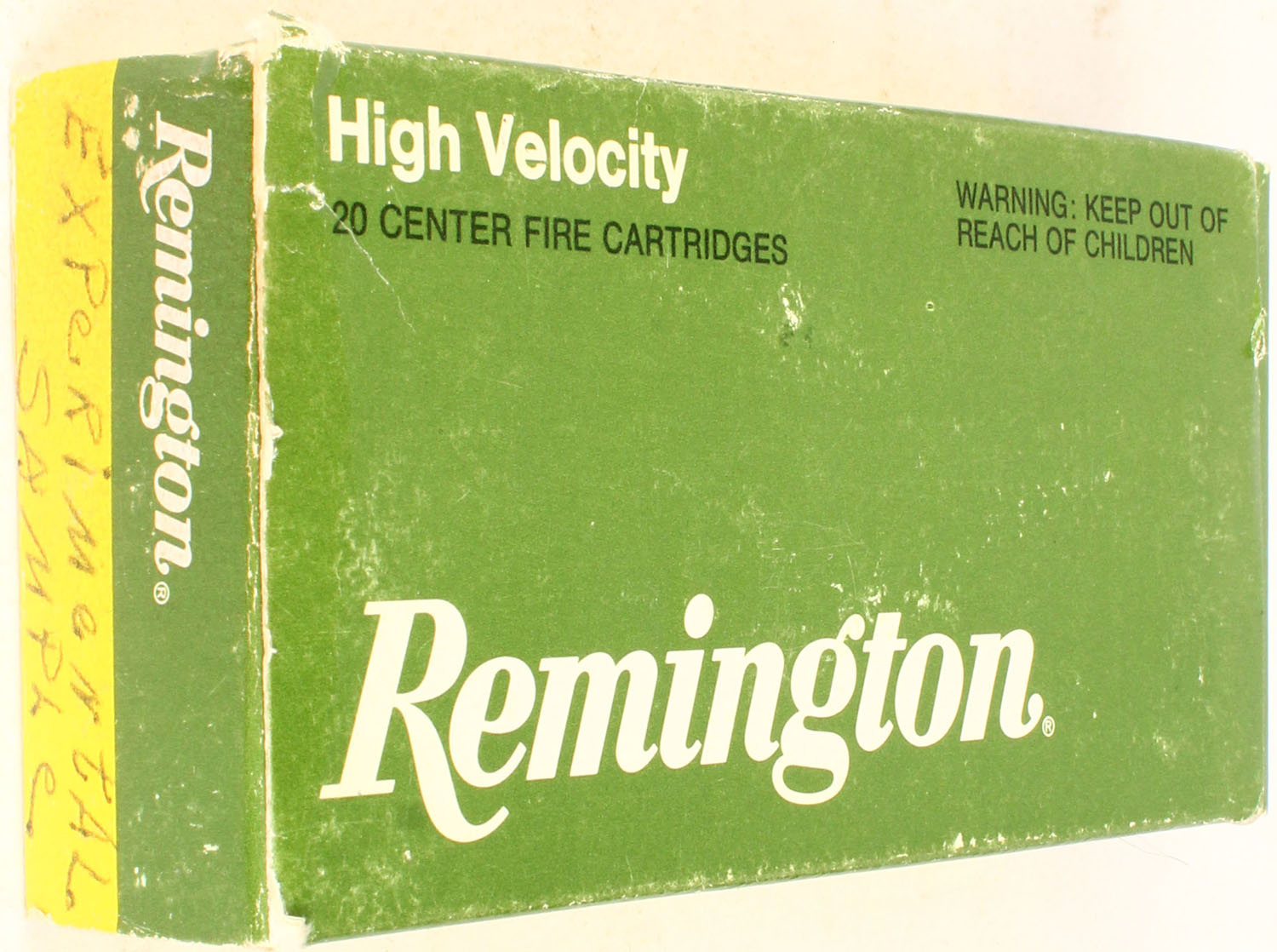 Remington, .223 Rem, High Velocity, ? Gr Soft PT, 1pc, Full, green/yellow box with black/white print, box is solid with light rub marks, ammo is excellent. Grade: Excellent - Value: 10 to 40