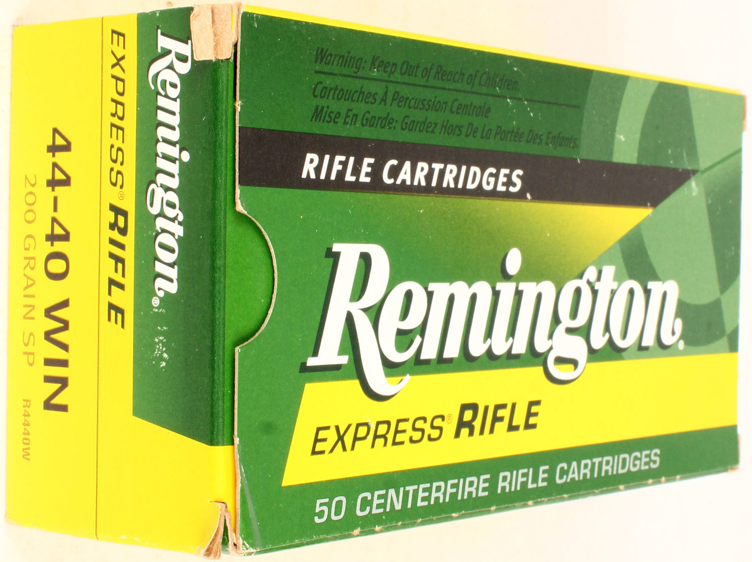 Remington, 44-40 Win, Express Rifle, 200 Gr. SP, 1pc, Full, multi-colored box, box is solid, ammo is excellent. Grade: Excellent - Value: 20 to 60