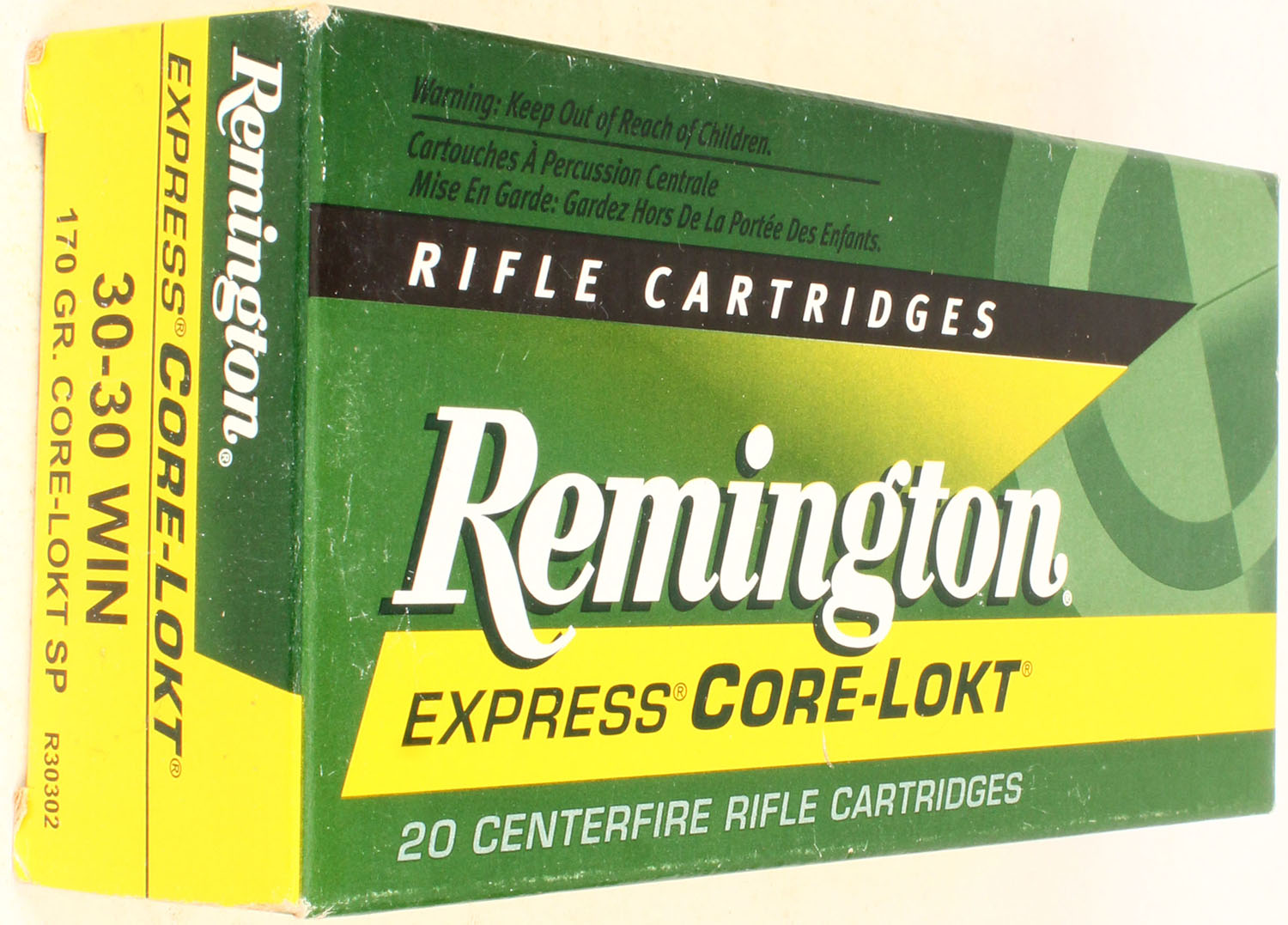 Remington, 30-30 Win, Express Core-Lokt, 170 Gr. SP, 1pc, Full, multi-colored box, box is solid, ammo is excellent. Grade: Excellent - Value: 20 to 60