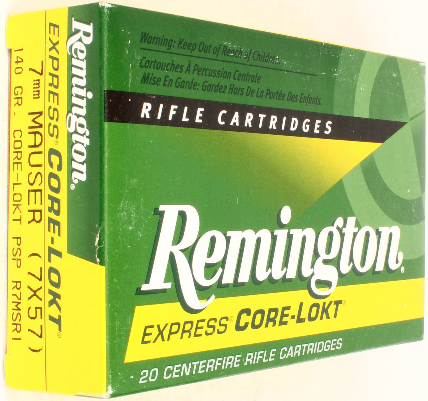 Remington, 7mm Mauser, Express Core-Lokt, 140 Gr. PSP, 1pc, Full, multi-colored box, box is solid, ammo is excellent. Grade: Excellent - Value: 20 to 60