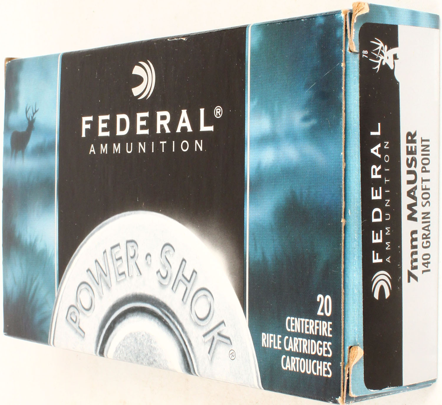 Federal, Power-Shok, 7mm Mauser, 140 Grain SP, Full, 1pc. multi-colored box, box is solid with excellent color, Ammo is excellent. Grade: Excellent - Value: 20 to 60