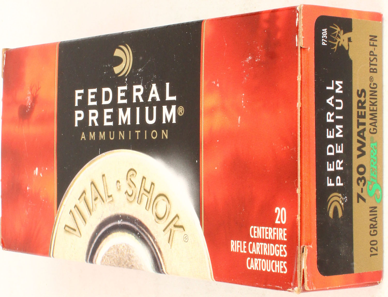 Federal, Vital-Shok, 7-30 Waters, 120 Grain Sierra Gameking BTSP-FN, Full, 1pc. multi-colored box, box is solid with excellent color, Ammo is excellent. Grade: Excellent - Value: 20 to 60