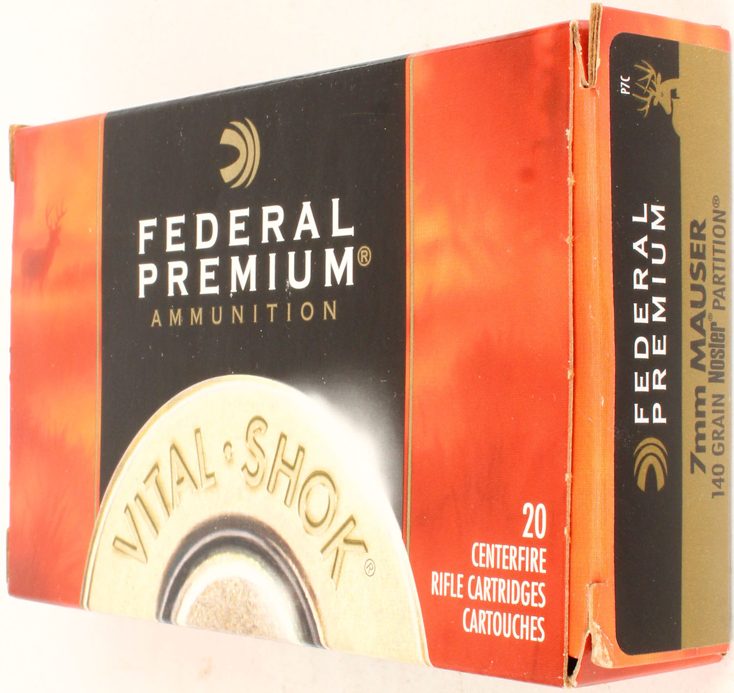 Federal, Vital-Shok, 7mm Mauser, 140 Grain Nosler Partition, Full, 1pc. multi-colored box, box is solid with excellent color, Ammo is excellent. Grade: Excellent - Value: 20 to 60