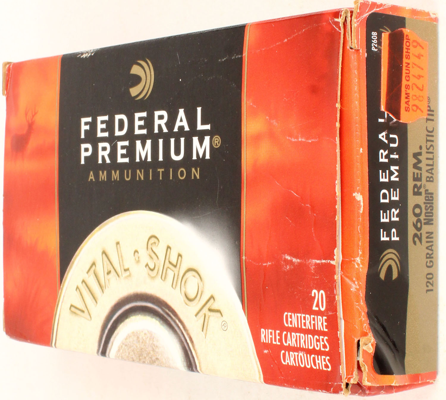 Federal, Vital-Shok, 260 Rem, 120 Grain Nosler Ballistic Tip, Full, 1pc. multi-colored box, box is solid with excellent color, Ammo is excellent. Grade: Excellent - Value: 20 to 60