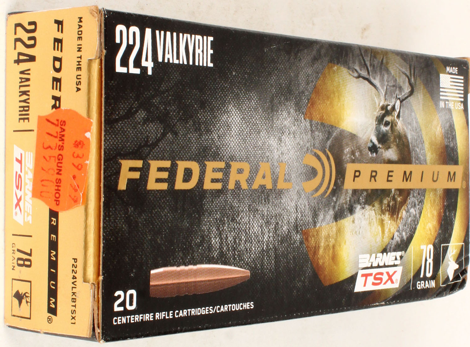 Federal, Premium, 224 Valkyrie, 78 Grain Barnes TSX, Full, 1pc. multi-colored box, box is solid with excellent color, Ammo is excellent. Grade: Excellent - Value: 20 to 60