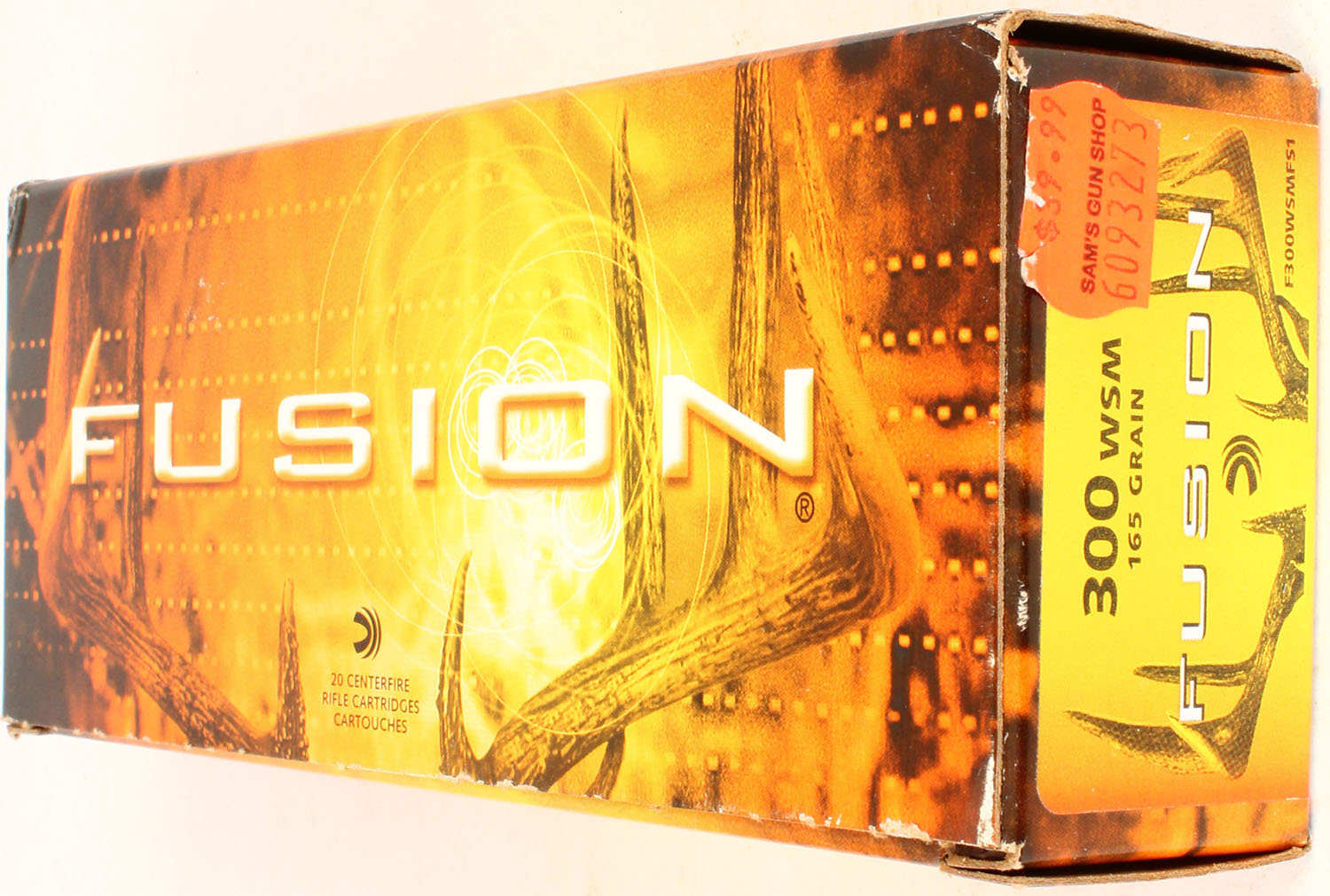 Federal, Fusion, 300 WSM, 165 Grain, Full, 1pc. multi-colored box, box is solid with excellent color, Ammo is excellent. Grade: Excellent - Value: 20 to 60