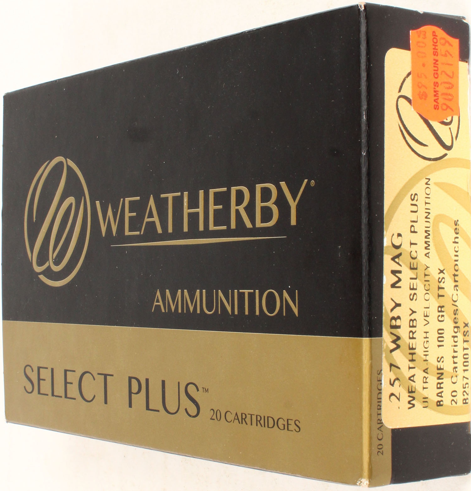 Weatherby, Select Plus, 257 WBY Mag, 100 Grain Barnes TTSX Ultra High Velocity, Full, 1pc. multi-colored box, box is solid with excellent color, Ammo is excellent. Grade: Excellent - Value: 20 to 60