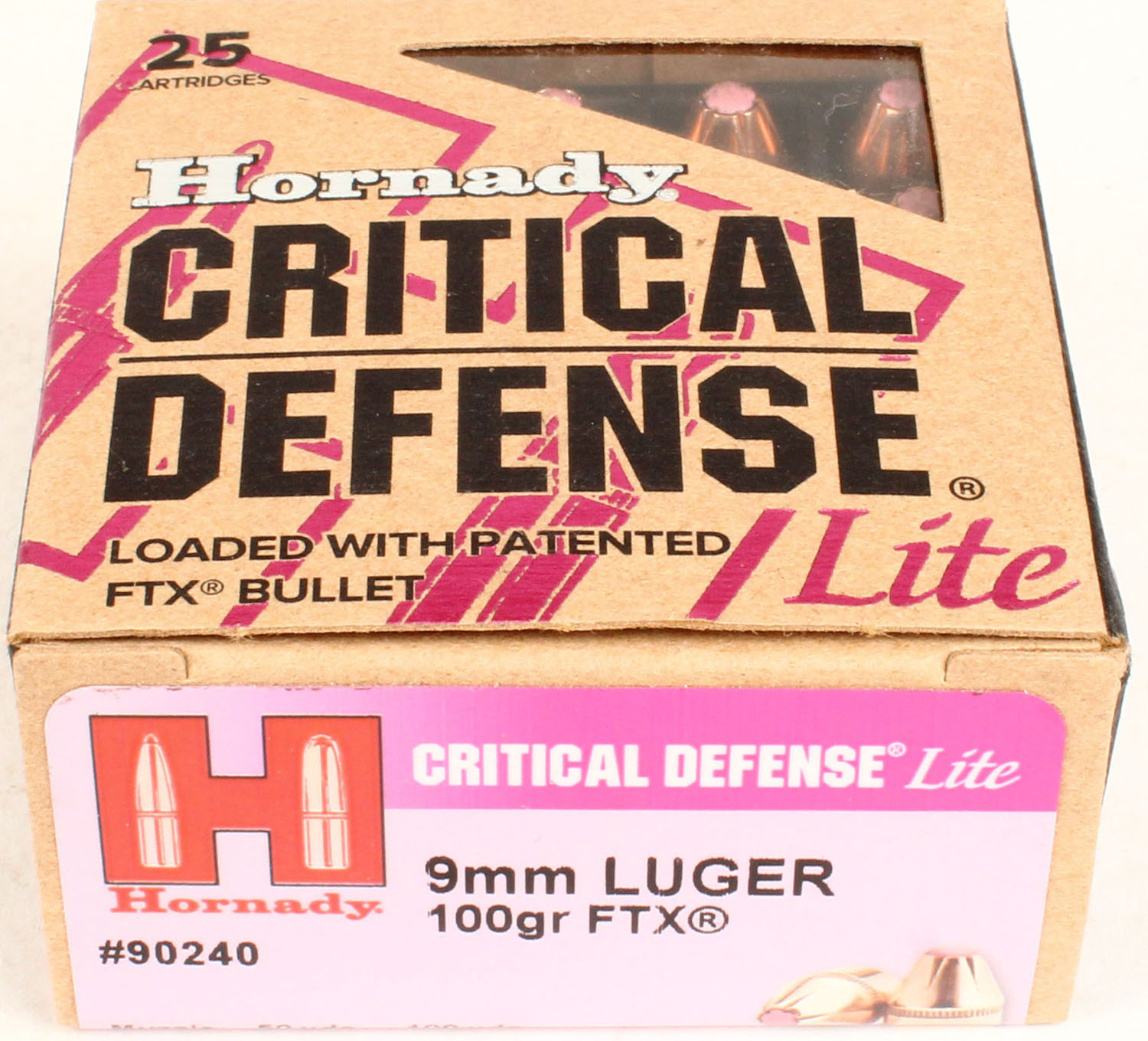 Hornady, Critical Defense Lite, 9mm Luger, 100 Grain FTX, Full, 1pc. multi-colored box, box is solid with excellent color, Ammo is excellent. Grade: Excellent - Value: 20 to 60