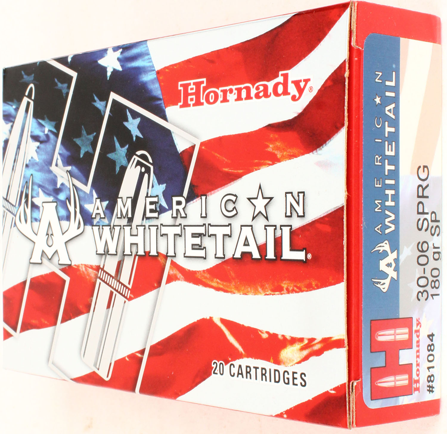 Hornady, American Whitetail, 30-06 SPRG, 180 Grain SP, Full, 1pc. multi-colored box, box is solid with excellent color, Ammo is excellent. Grade: Excellent - Value: 20 to 60