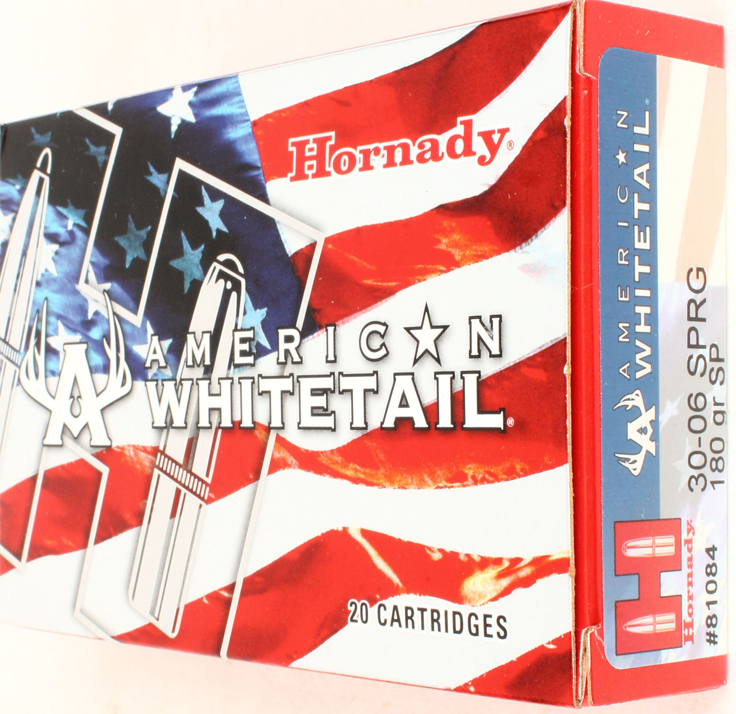 Hornady, American Whitetail, 30-06 SPRG, 180 Grain SP, Full, 1pc. multi-colored box, box is solid with excellent color, Ammo is excellent. Grade: Excellent - Value: 20 to 60