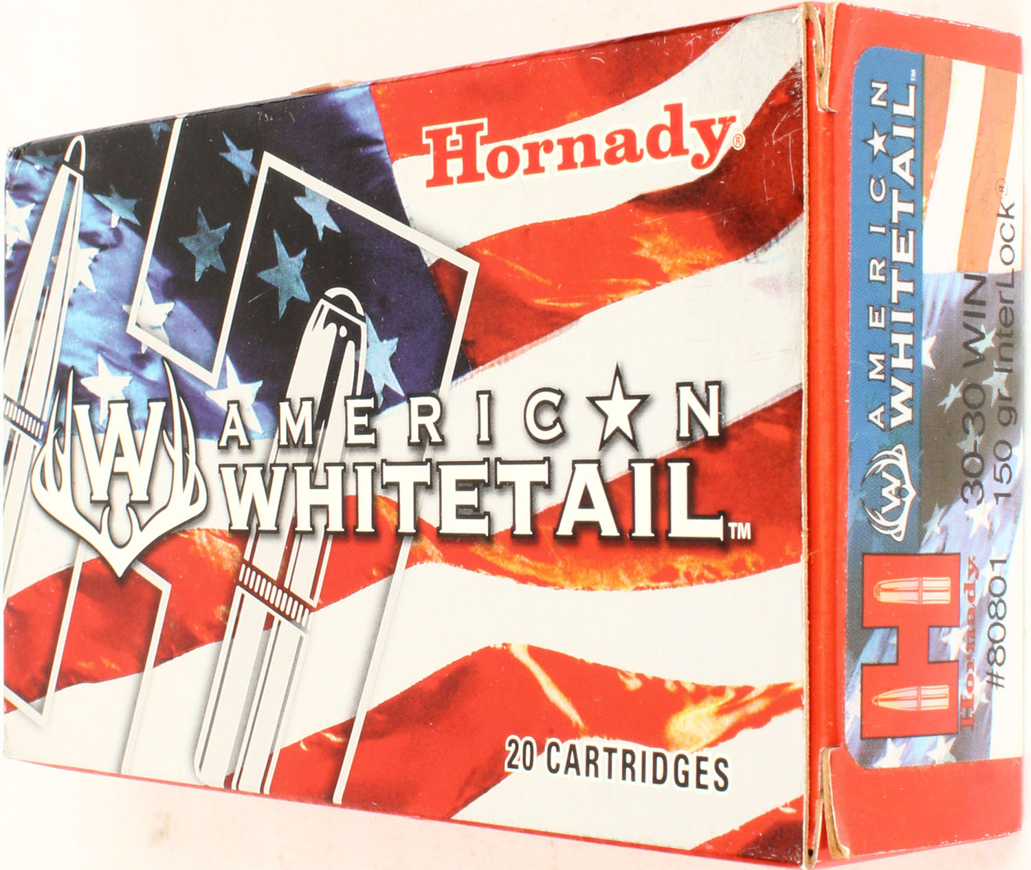Hornady, American Whitetail, 30-30 Win, 150 Grain Interlock, Full, 1pc. multi-colored box, box is solid with excellent color, Ammo is excellent. Grade: Excellent - Value: 20 to 60