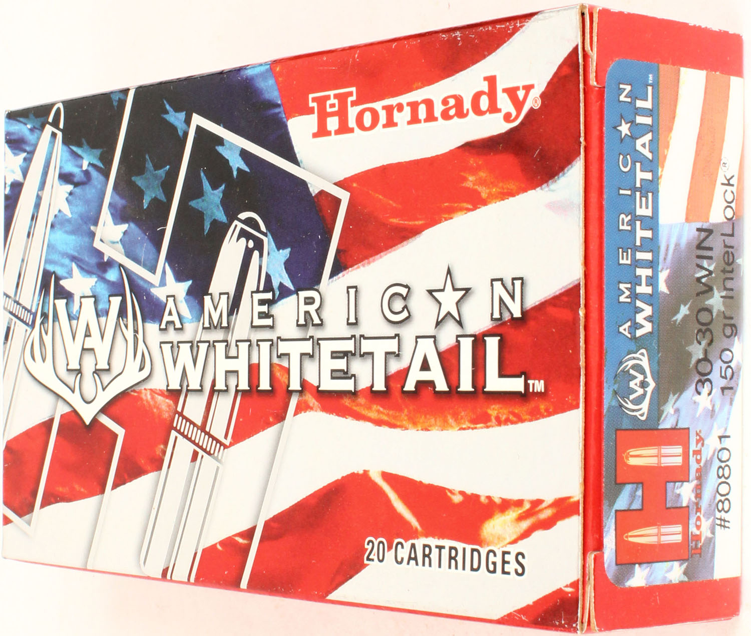 Hornady, American Whitetail, 30-30 Win, 150 Grain Interlock, Full, 1pc. multi-colored box, box is solid with excellent color, Ammo is excellent. Grade: Excellent - Value: 20 to 60