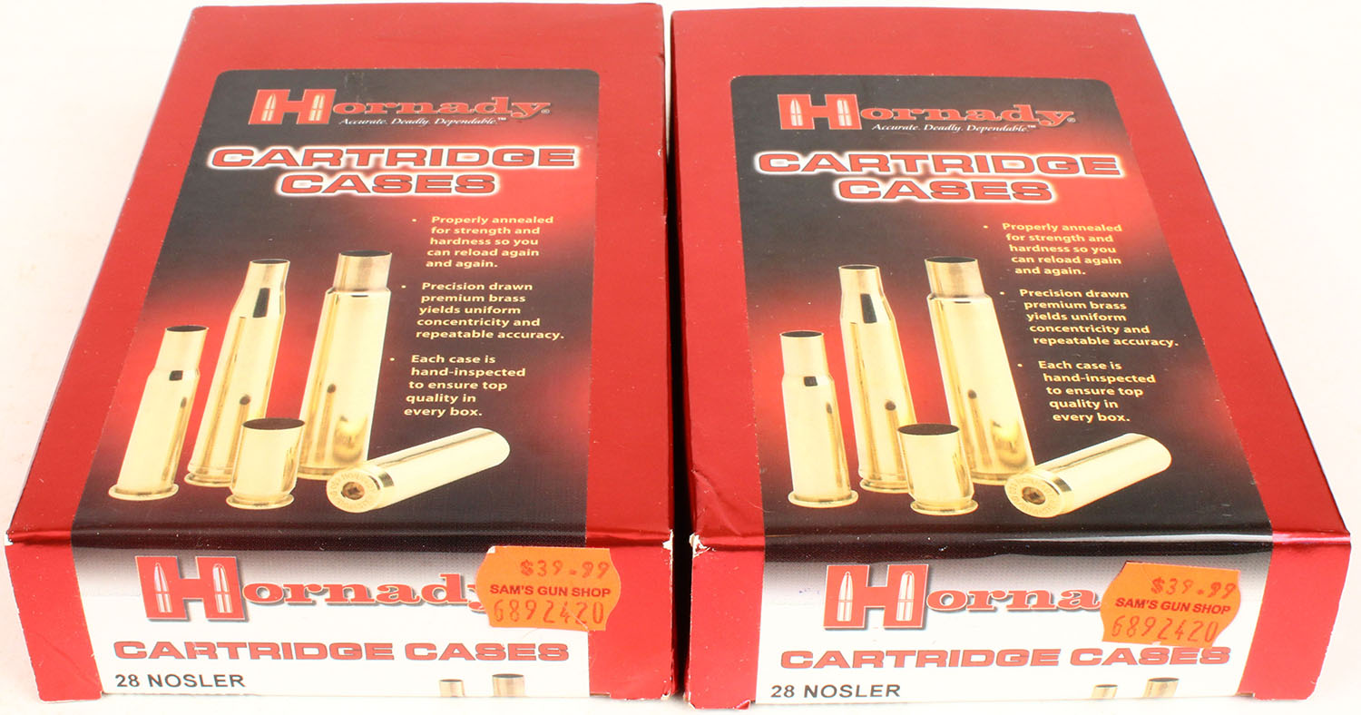 | Lot of 2 Hornady, Unprimed Cartridge Cases, 28 Nosler, Full, 1p...