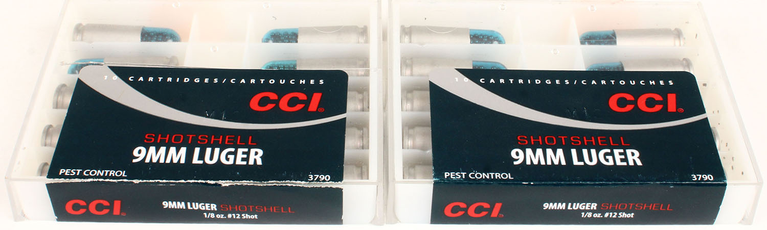 Lot of 2 CCI, 9mm luger, shotshells, Full, 1pc. multi-colored box, Ammo is excellent. Grade: Excellent - Value: 6 to 60