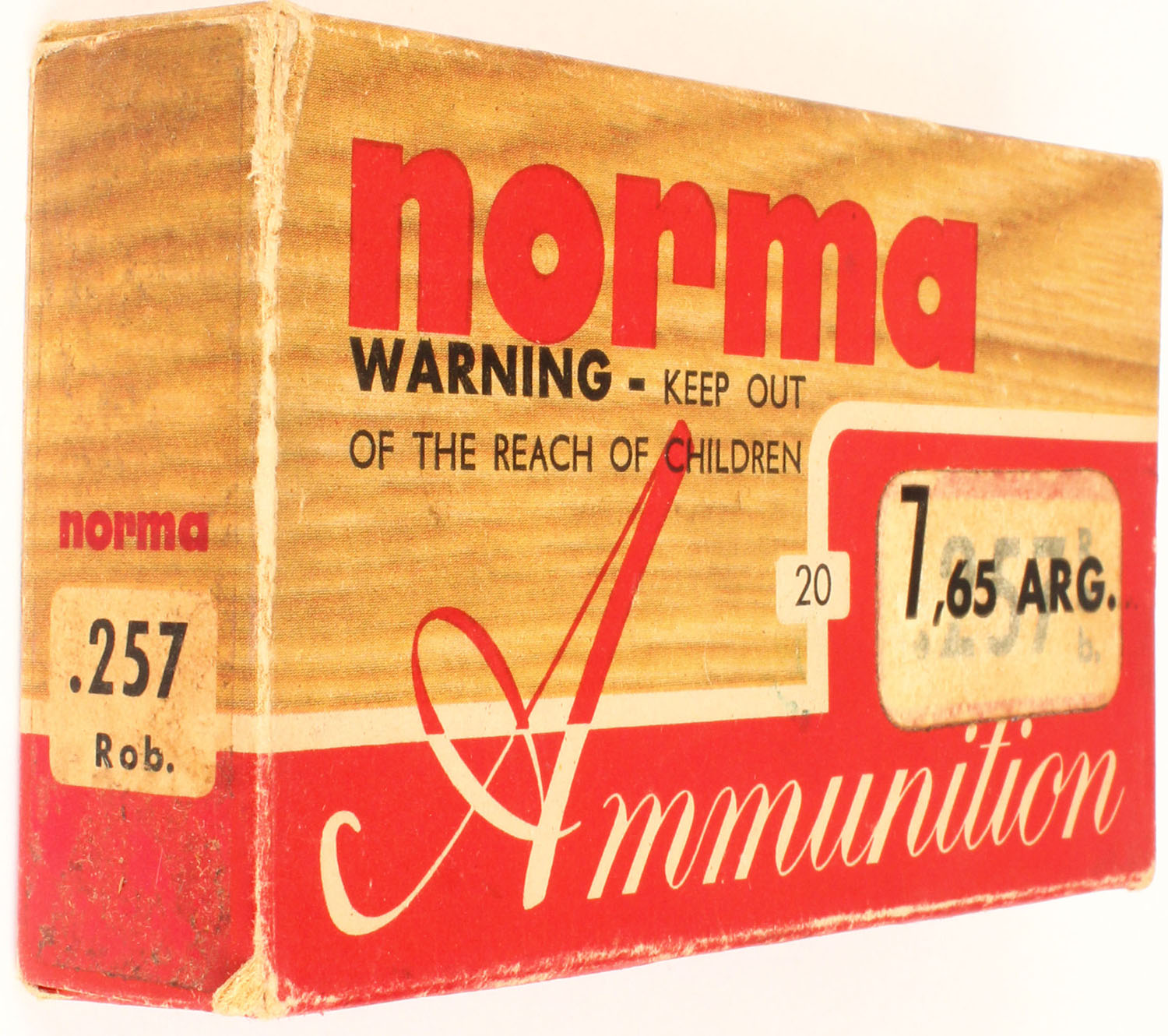 Norma 7.65 arg., 150 Grain soft Point, Full, 1pc. multi-colored box, Ammo is excellent. Grade: Excellent - Value: 16 to 50