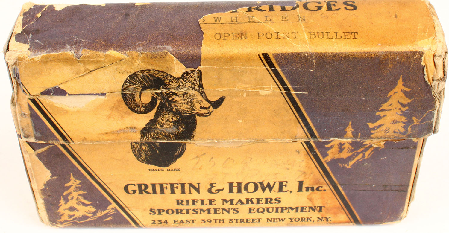 Gambles, .35 Whelen FULL, 2pc. multi-colored box, box is scuffed, missing 1 end flap, ammo has cracks. Grade: Very Good - Value: 16 to 80