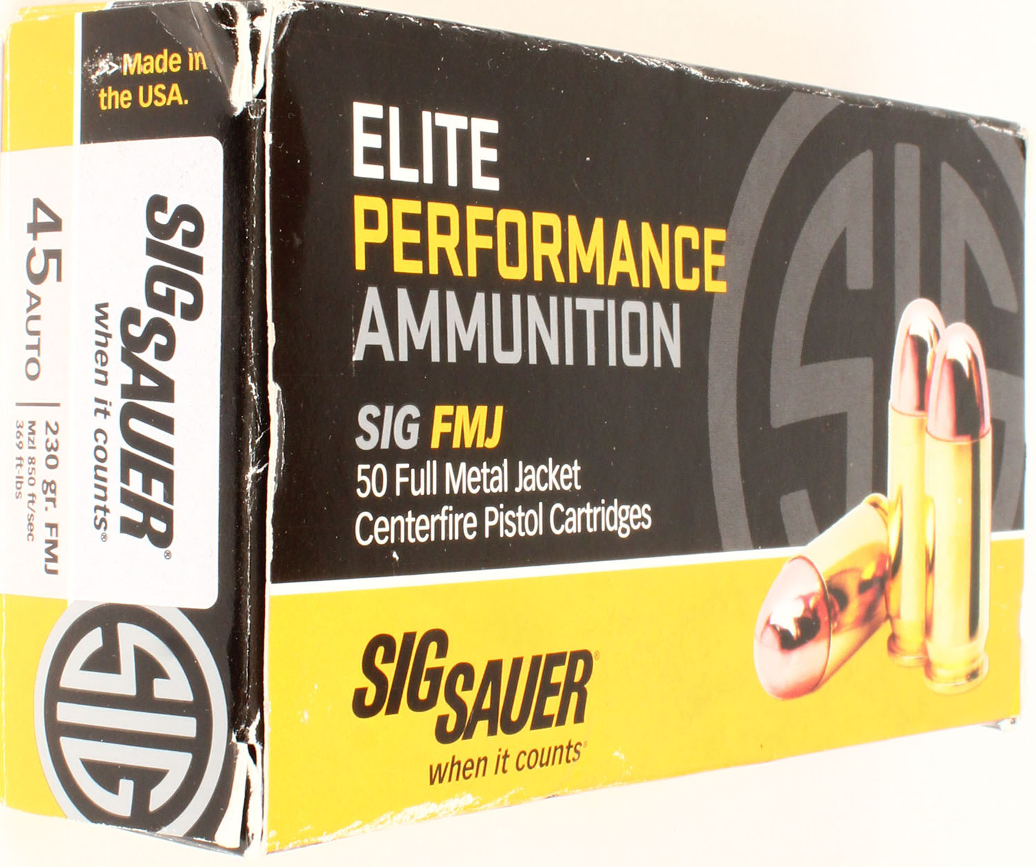 | Sig Sauer, Elite Performance, 45 auto, 230 Grain FMJ, Full, 1pc....
